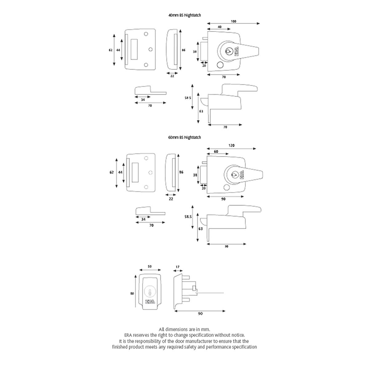 Product Name ERA British Standard High Security Nightlatch 60mm in Brass Finish