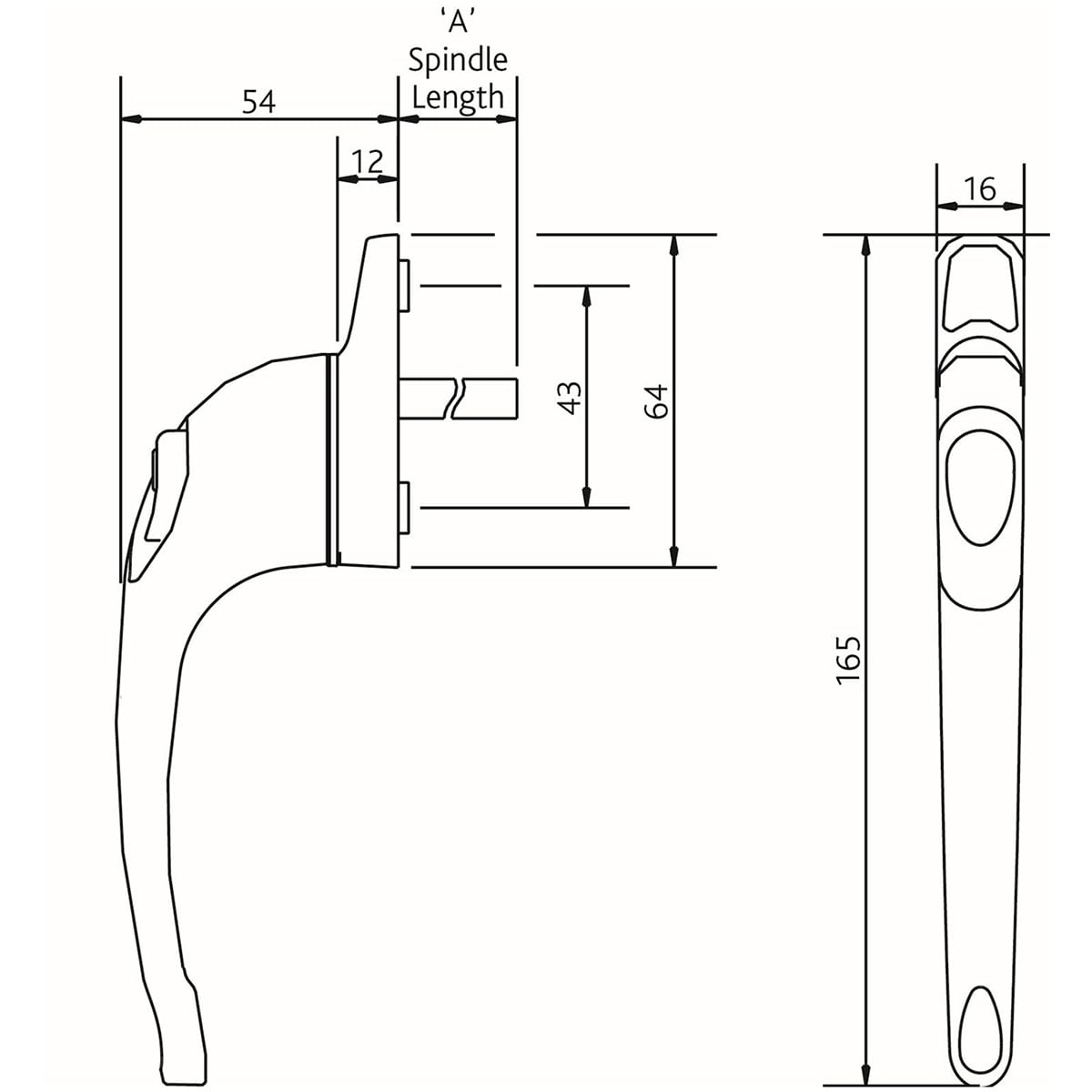 • Universal non handed handle suitable for windows fitted with an espagnolette lock