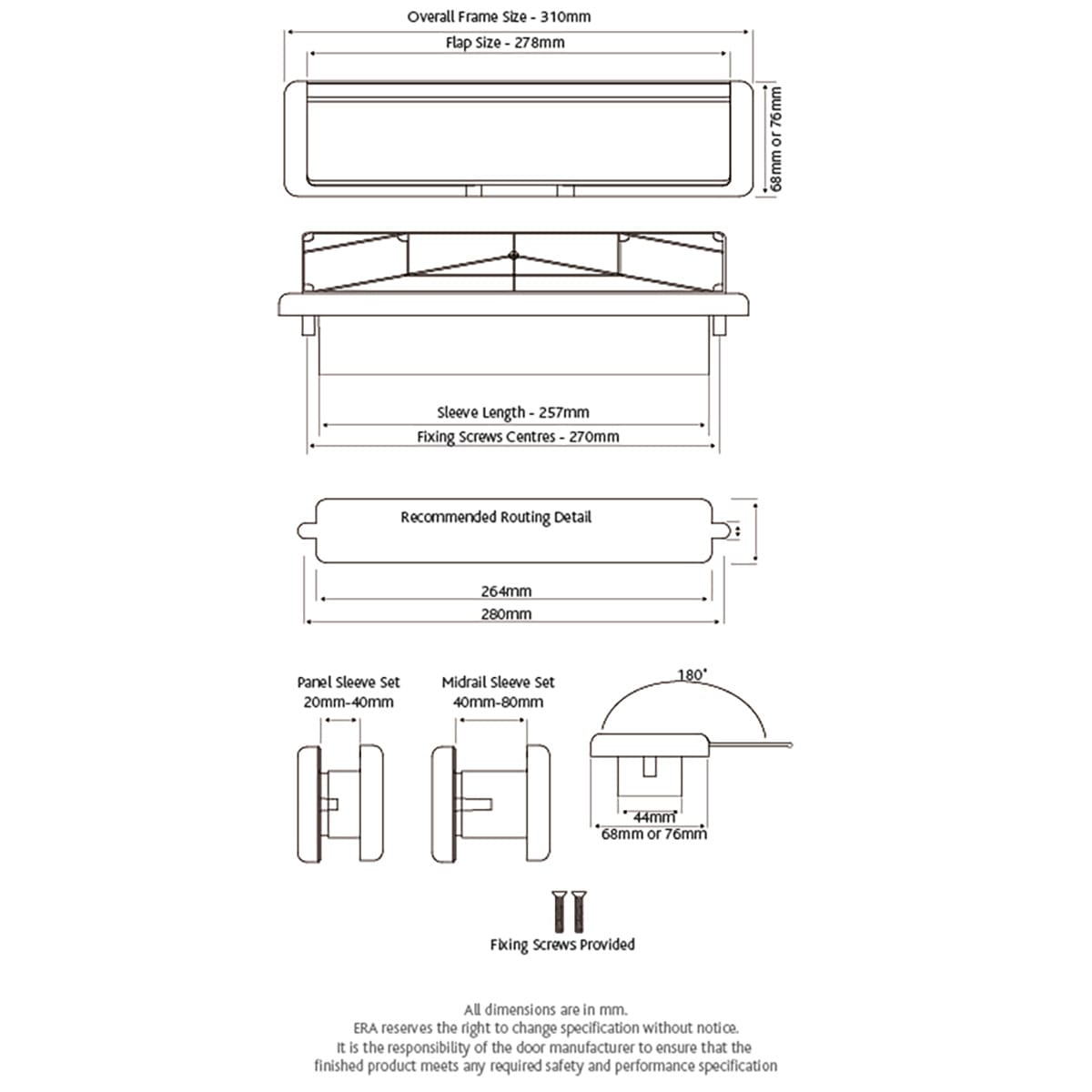 Product Name ERA Nu Mail Door Letterplate Midrail 76mm (40-80) Black