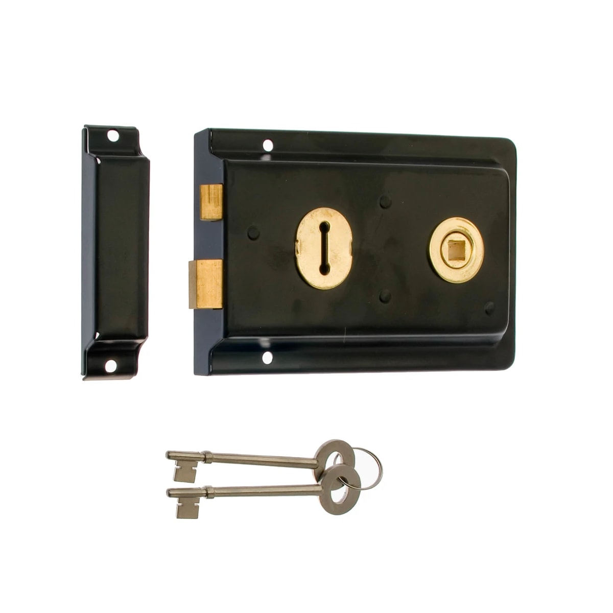 IDER177106 Locks & Security > Locks, Latches & Cylinders > Rim Locks & Latches > ERA Surface Mounted Rim Sashlock 152 x 105 x 21mm Black