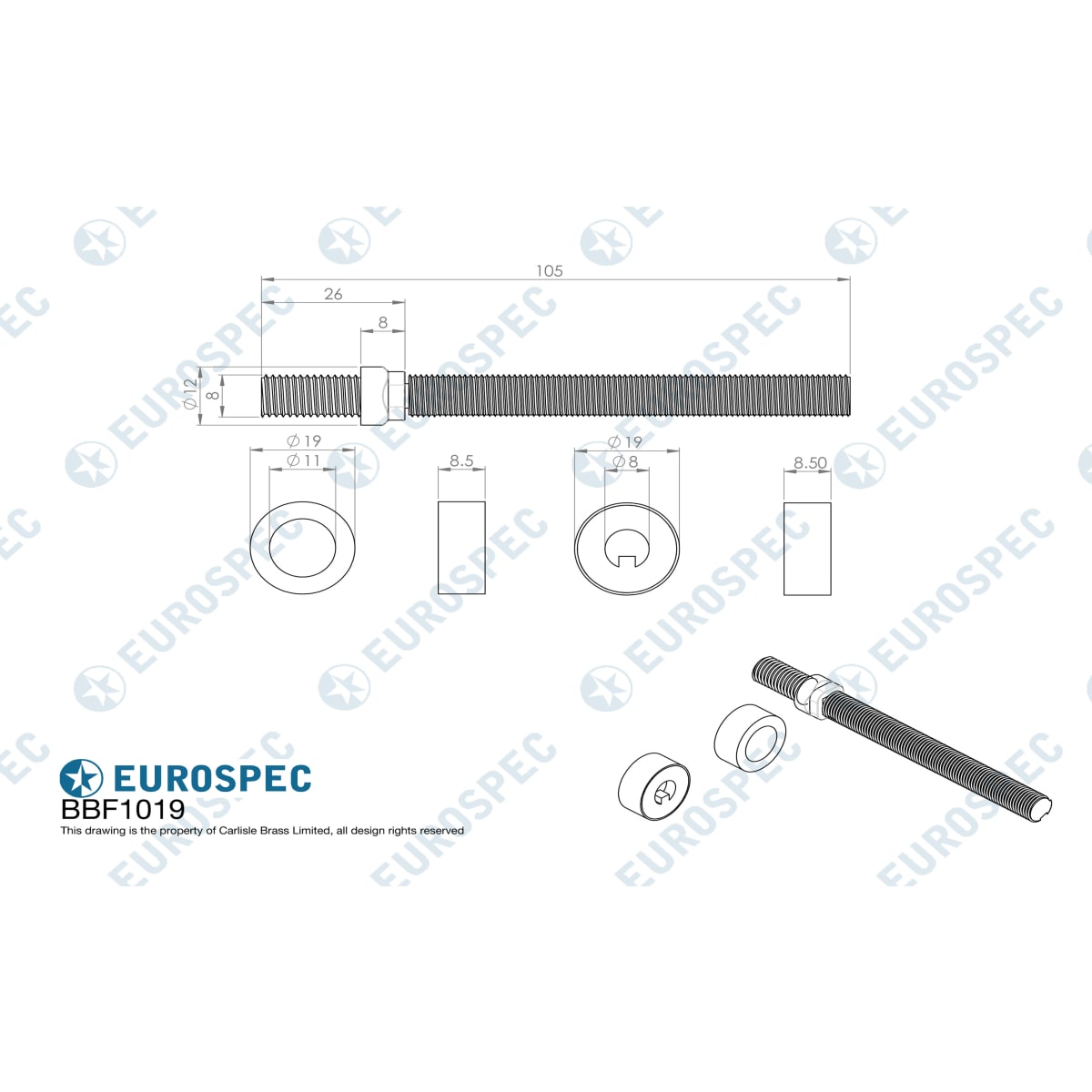 Eurospec Back To Back Fixing Pack Satin Stainless Steel is manufactured from metal. Suitable for use with 19 mm diameter pull handles. The fixing pack converts two bolt fix pull handles into pairs. Designed for timber and glass doors with 12mm to 55mm thickness.