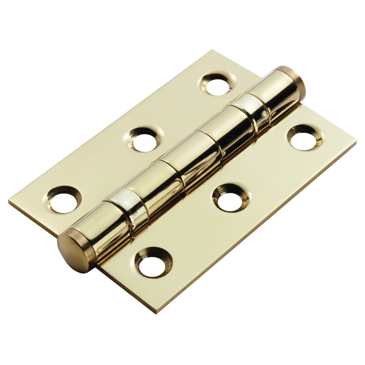 Eurospec Double Ball Bearing Butt Hinge 76 x 50mm Pack of 2 Polished Brass for internal residential doors. Dimensions: 76 x 50 x 2mm.