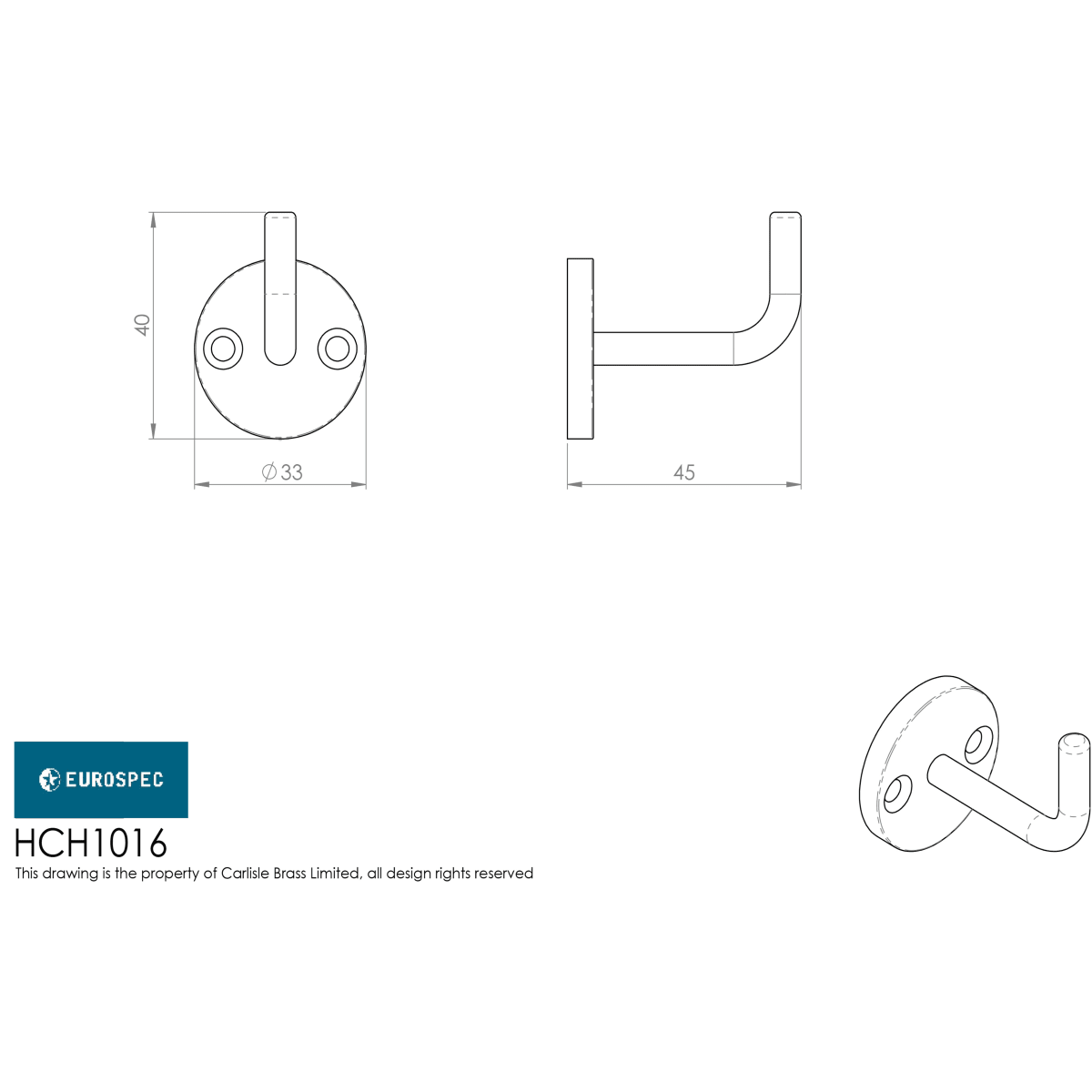 Product Name Eurospec Coat Hook on a 33mm Rose Satin Stainless Steel