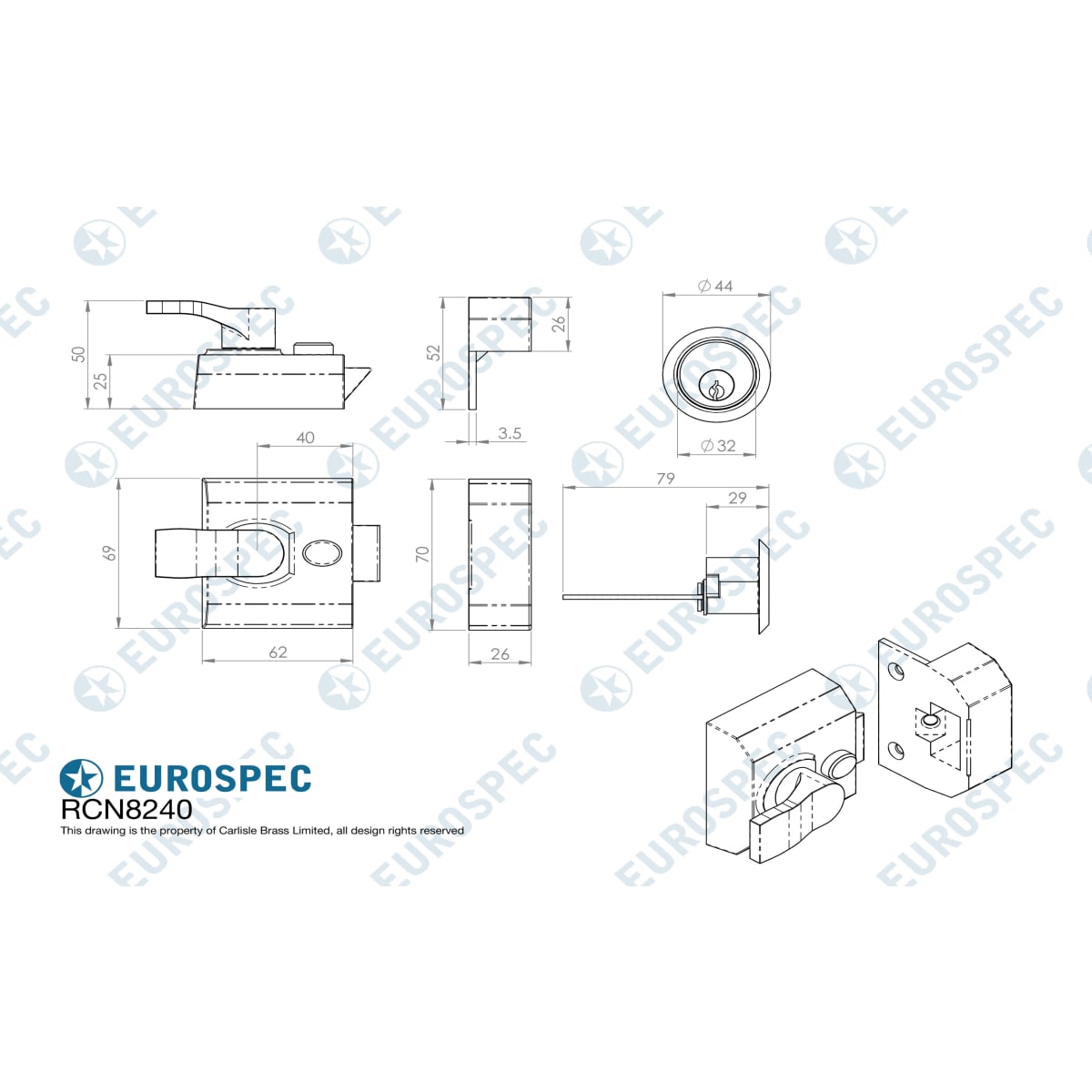 Product Name Eurospec Contract Rim Cylinder Nightlatch 40mm Backset Satin Chrome