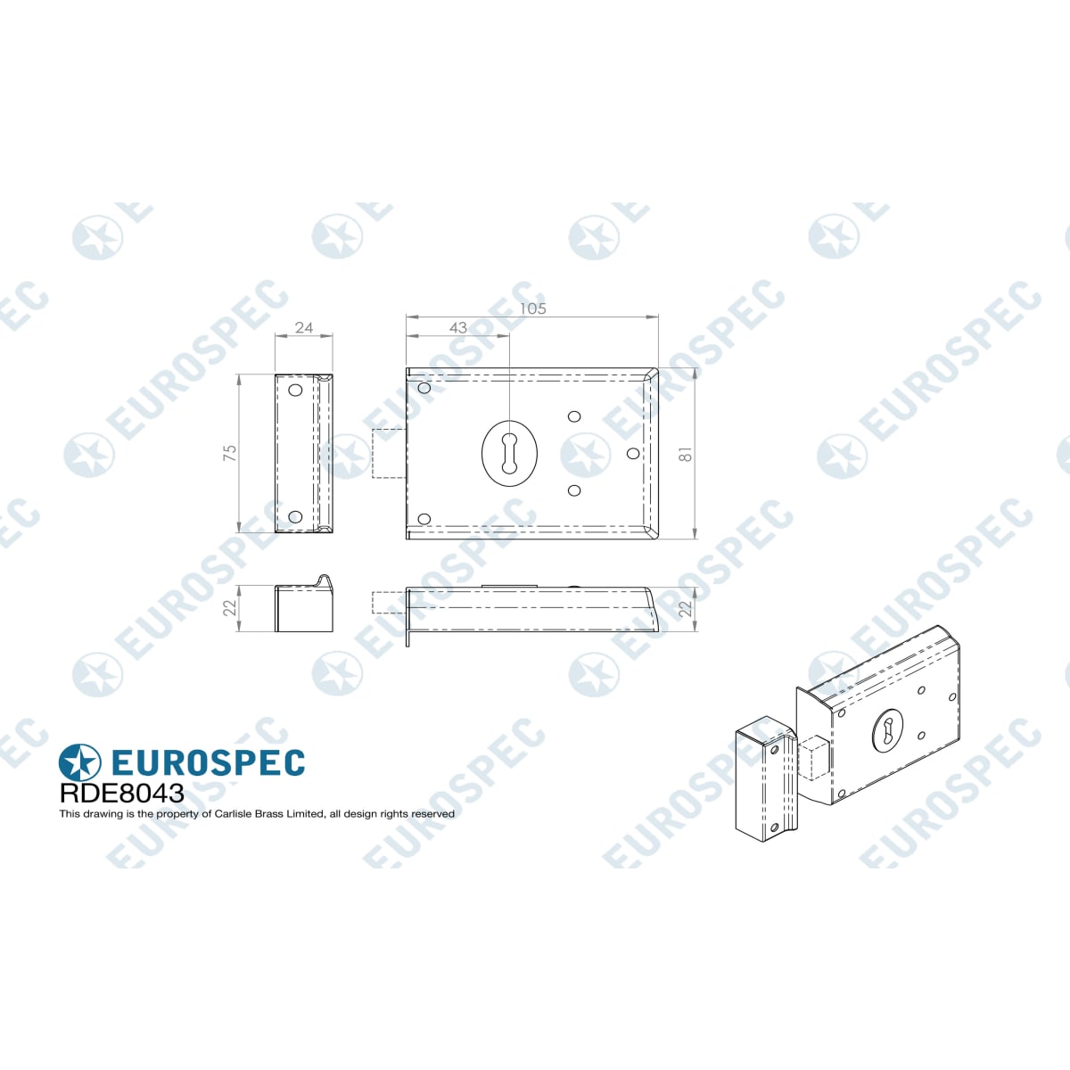 IDSTRDE43S Locks & Security > Locks, Latches & Cylinders > Rim Locks & Latches > Eurospec Contract Rim Deadlock Satin Chrome