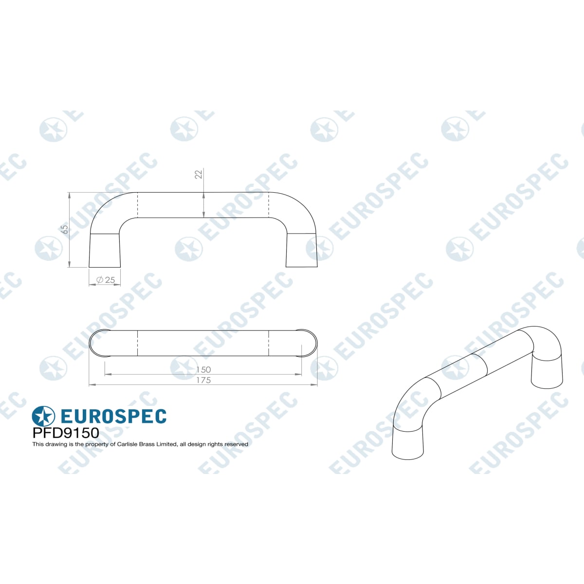 Product Name Eurospec 'D' Shaped Pull Handle 150 x 22mm Satin Anodised Aluminium