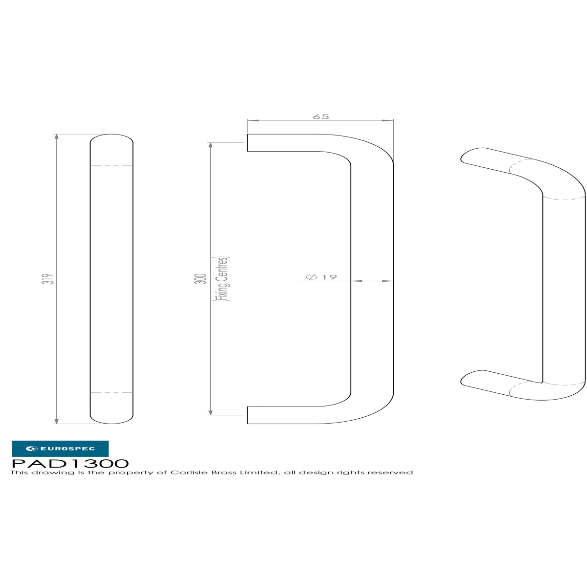 Eurospec 'D' Shaped Pull Handle 319 x 19mm (L x Dia) Satin Stainless Steel is made from stainless steel making it rigid. The handle has a 63mm projection where the centre of the fixings are 300mm apart. This classic tubular design makes it suitable for many different environments. It is mainly used in commercial projects as it very strong and where a hardwearing pull is required.