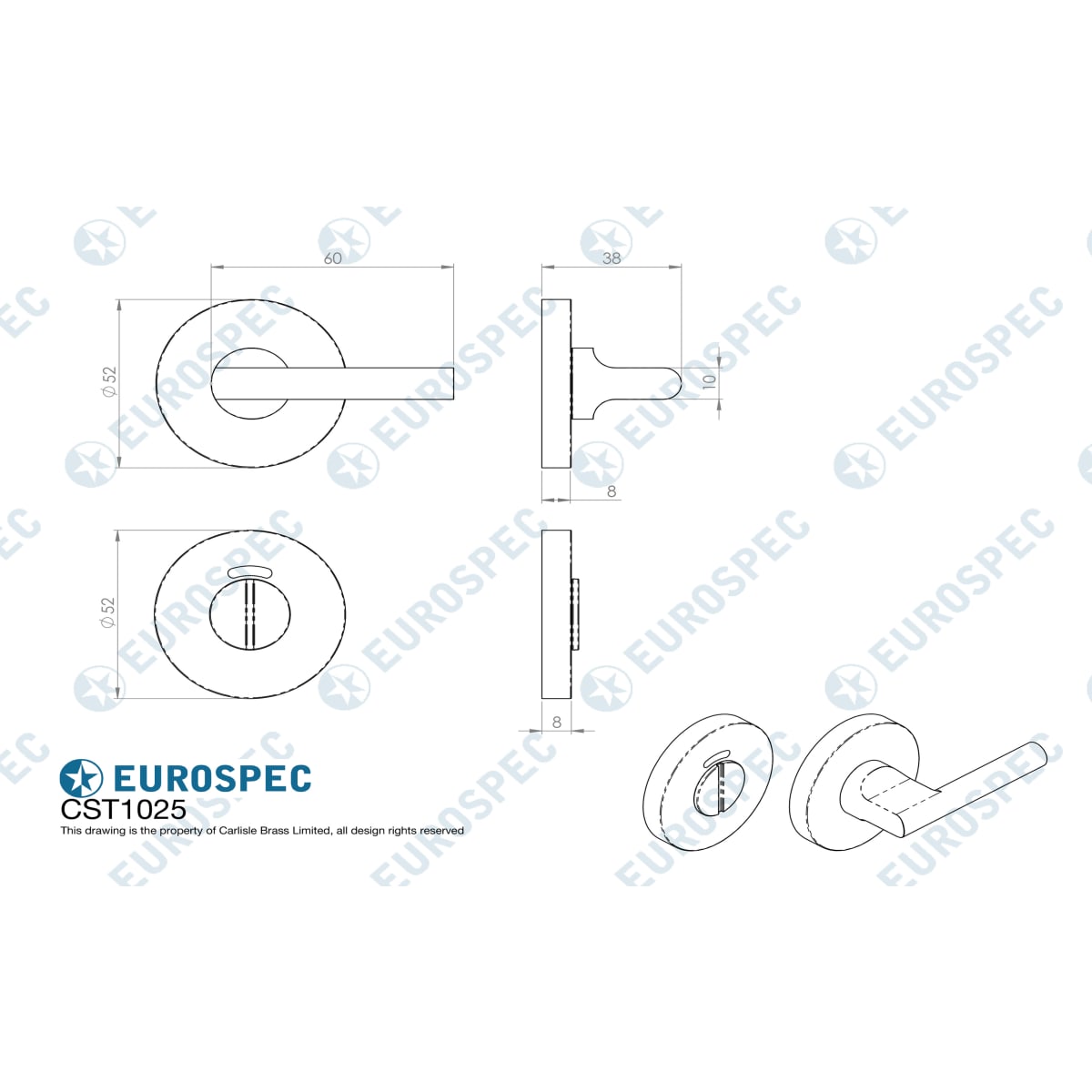 Eurospec Disabled Thumb Turn and Release Satin Stainless Steel set operates with a thumbturn and release action. The lock is ideal for public or office toilet doors. The rose measures in 52mm diameter with the thicknesses of 8mm. The turn has long tubular bar with the vacant or engaged indicator on the release side.