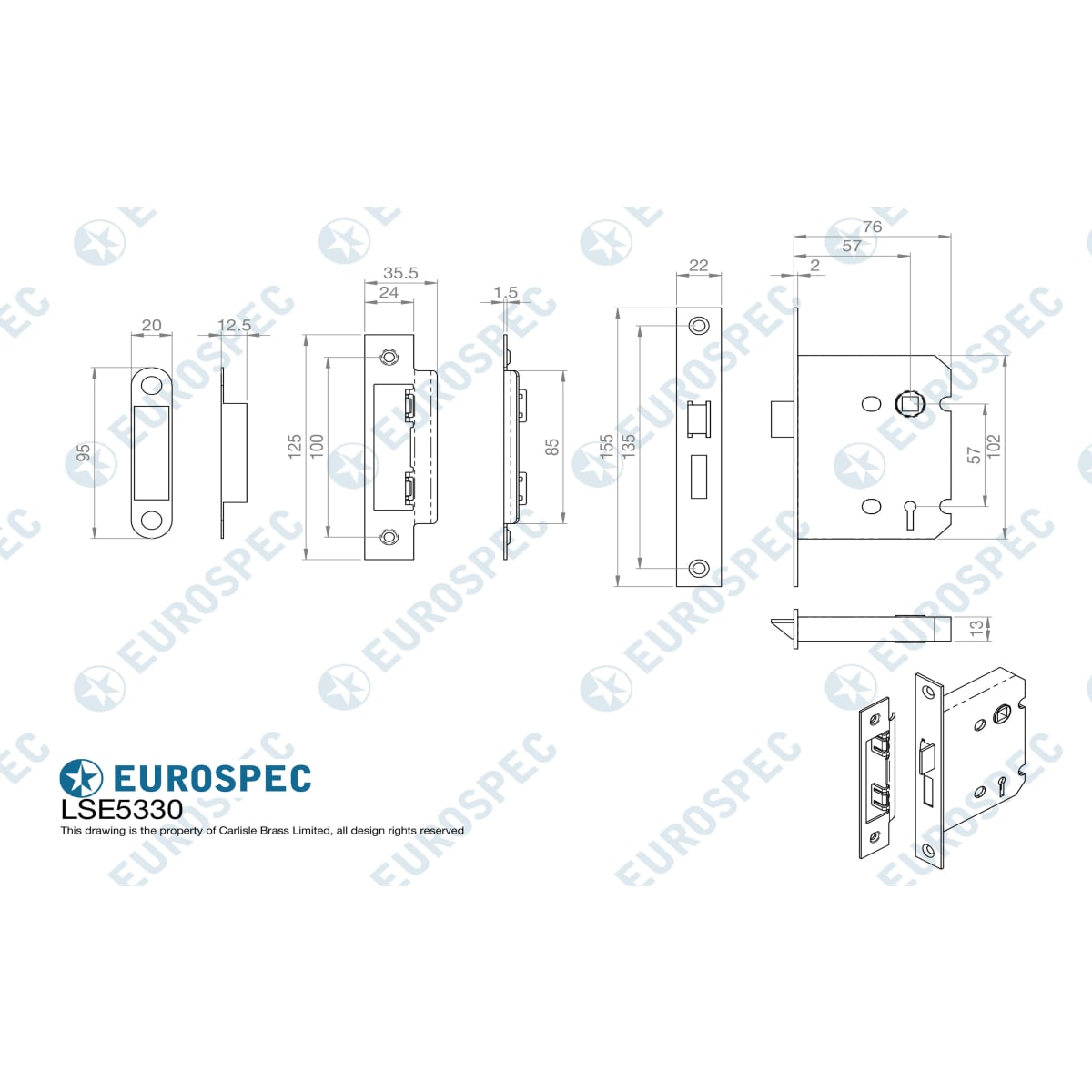 Product Name Eurospec Easi-T Contract 3 Lever Sashlock 64mm Electro Brassed