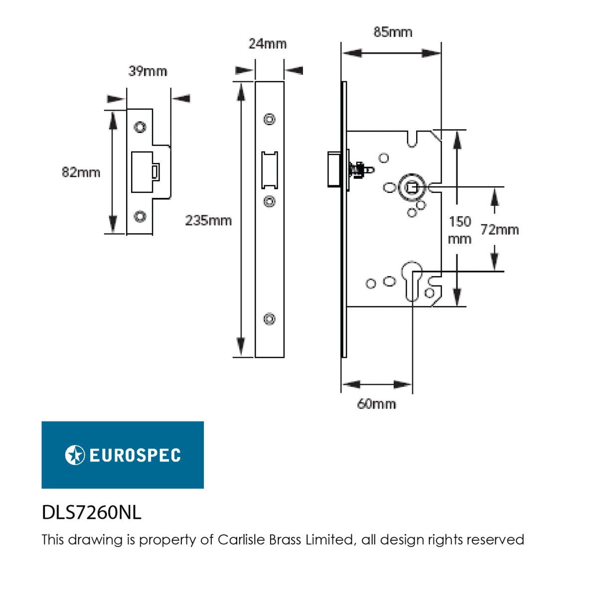 • Backset: 60mm