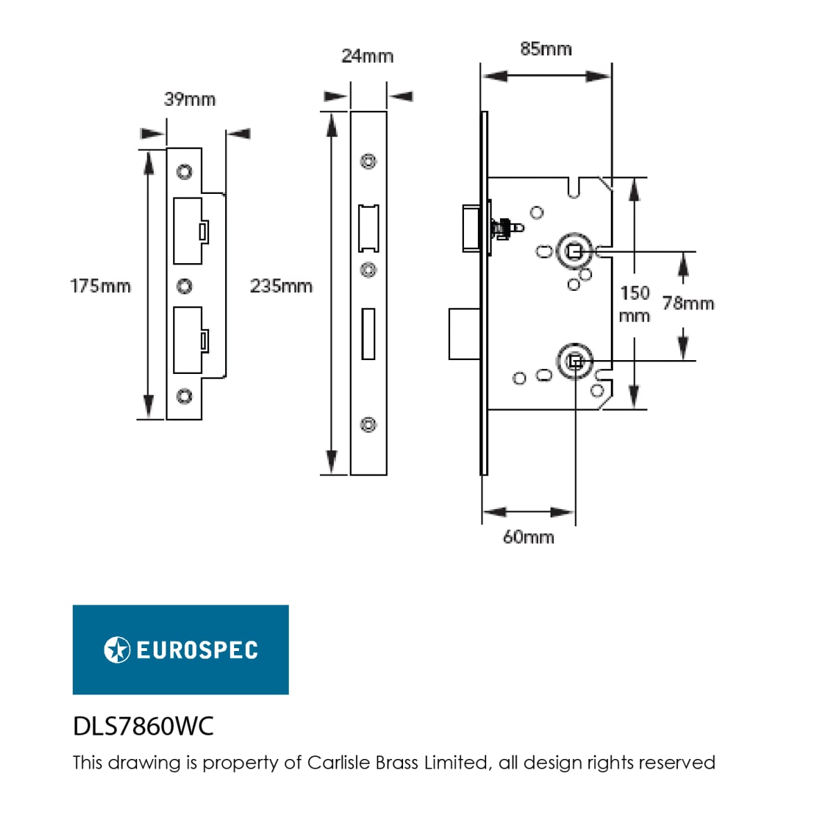 • Backset: 60mm