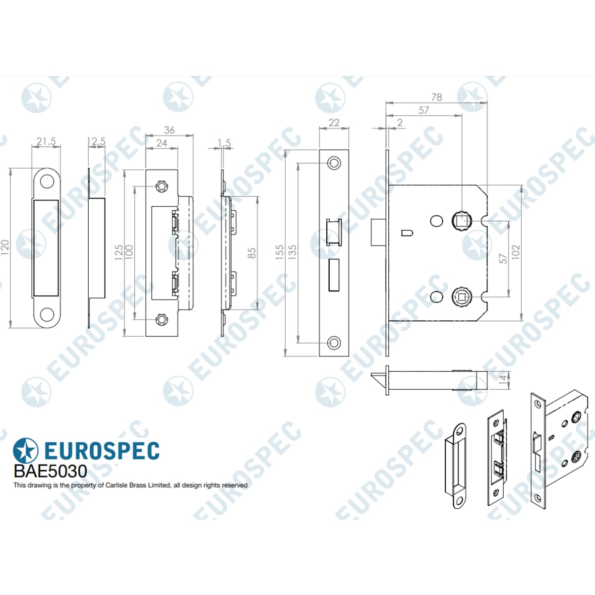 Product Name Eurospec Easi-T Din Radius Bathroom Lock 60mm Satin Stainless Steel