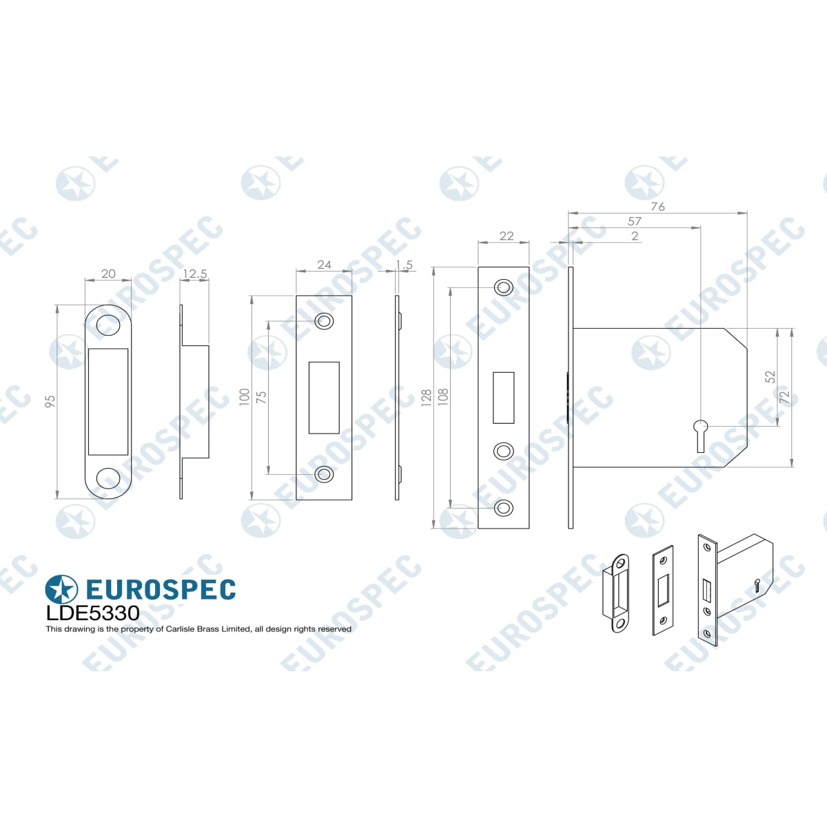 Product Name Eurospec Easi-T Residential 3-Lever Deadlock 64mm Electro Brassed