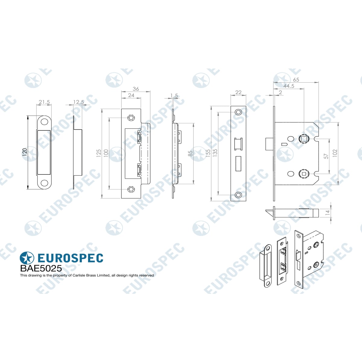 • Lock Centres: 57mm