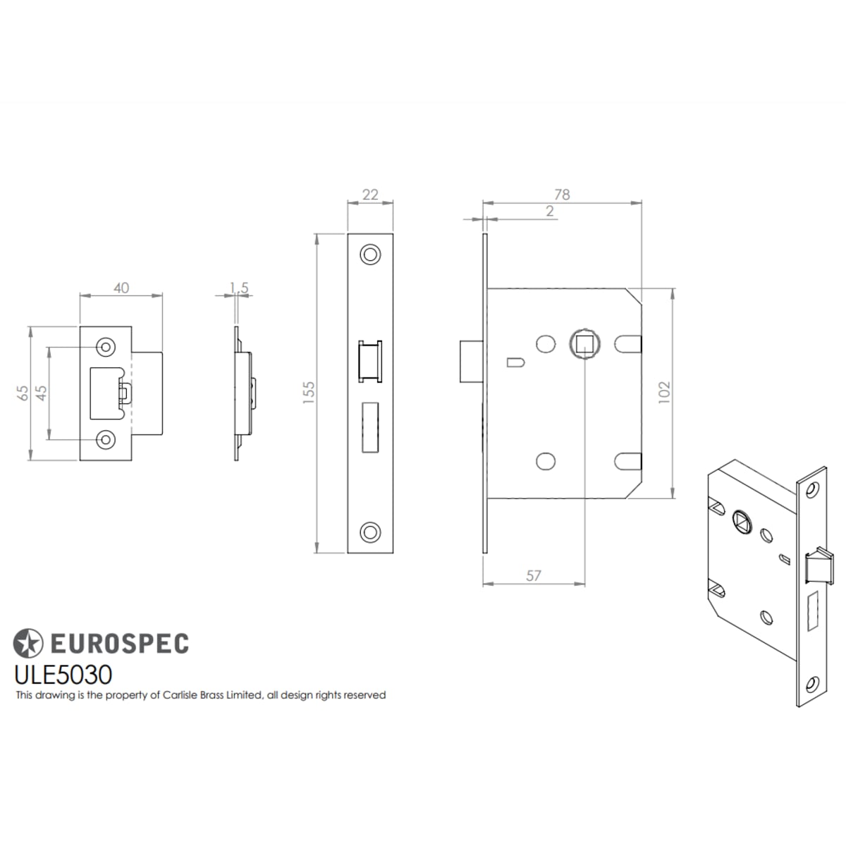 Eurospec Easi-T Upright Architectural Latch 76mm Satin Stainless Steel with square corners provides easy replacement to existing locks where very little or no work is required. Ideal for use on fire doors that 30/60 minute rated.