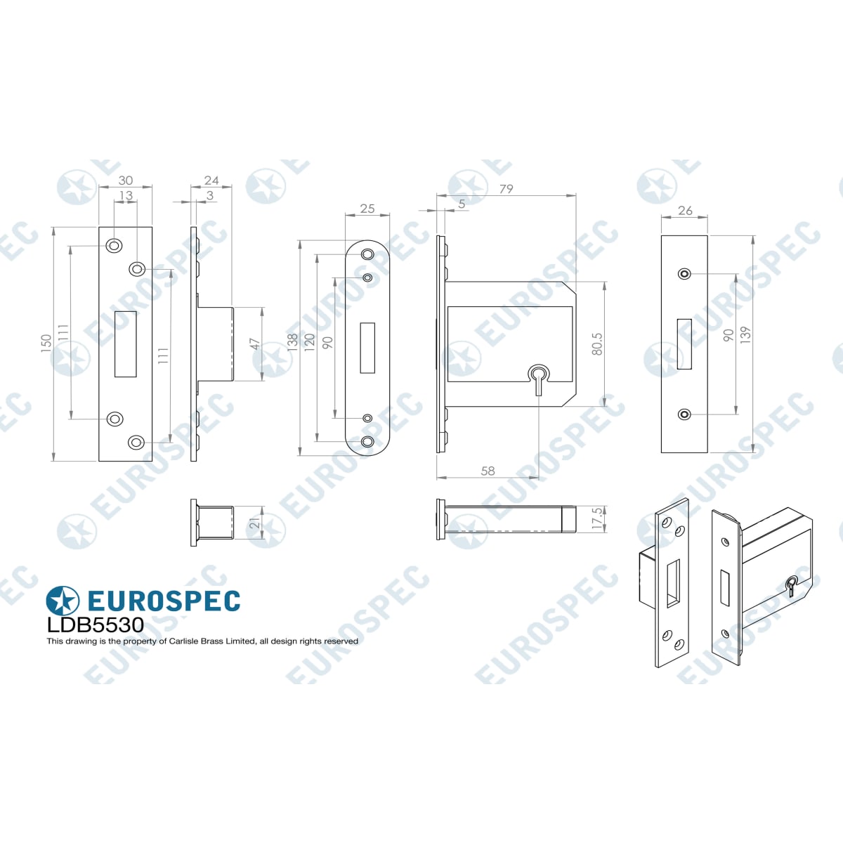 Eurospec Easi-T5 Lever Sashlock 76mm L Stainless Brass is made from stainless steel, which makes it strong and long lasting. It is operated by a key, and is often used in conjunction with a night latch. This lock provides features a 5-lever mechanism that provides a high degree of security. It is manufactured in accordance with BS EN 12209 that ensures the good quality and high performance of the product.