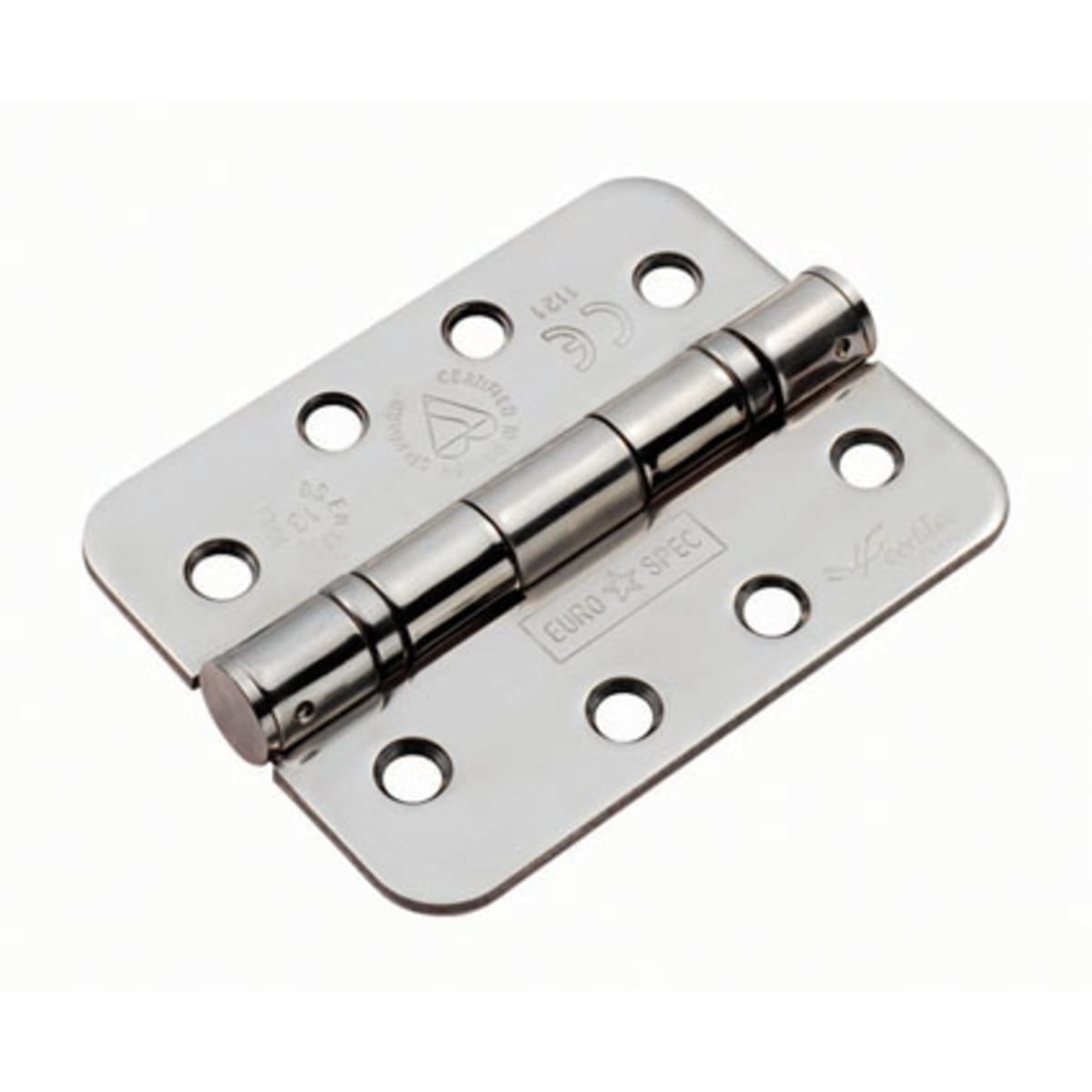 Grade 13 Ball Bearing Hinge, Radius corners (Max Load 120kg). The most popular type of door hinge on the market today. These are a perfect choice for when you have doors of 40mm or 44mm firecheck, internal or external. They have a CE mark and are Certifire tested. Suitable for industrial, commercial and domestic use. Ball bearing hinges have always been very popular for their smooth operation, durability, long lasting design and ability to carry heavier loads than washered hinges. For standard internal residential doors a pair of hinges is adequate;  however fitting 3 hinges per door has its advantages. It will look aesthetically pleasing and from a practical viewpoint it helps spread the load evenly and will help to overcome twisting or warping. This can sometimes happen to doors over a period of time where heat and moisture are a factor. Comes with a 25 year mechanical guarantee and are fire door rated.