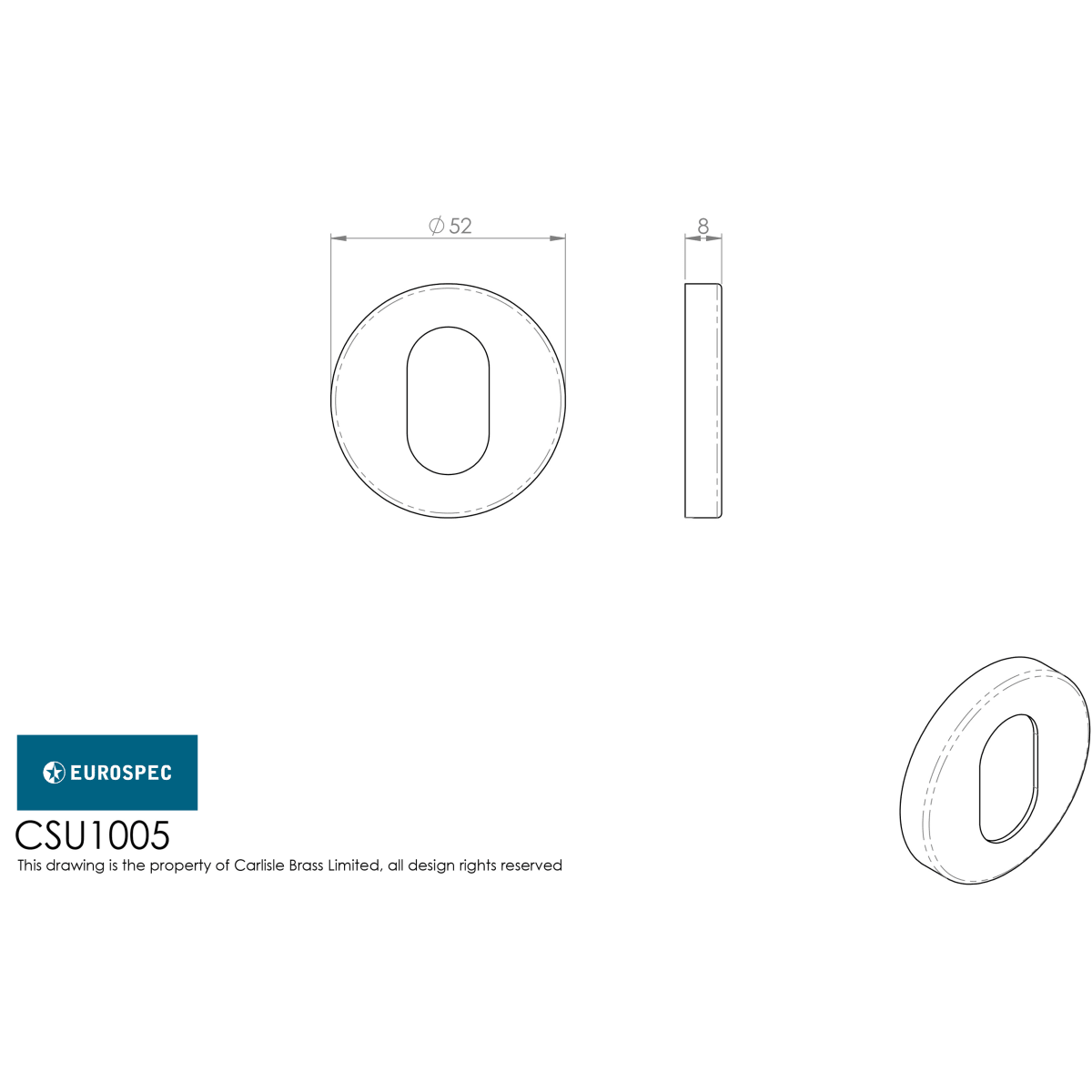 Eurospec Oval Profile Escutcheon 8 x 52mm (T x Dia) Satin Stainless Steel made from stainless steel provides rigidity. This product is suitable for all standard profile, oval profile and Euro profile cylinders. The cover matches all the steel-work range and steelworx levers. Finish prevents the products from tarnishing. The product has high tensile strength due to its make.