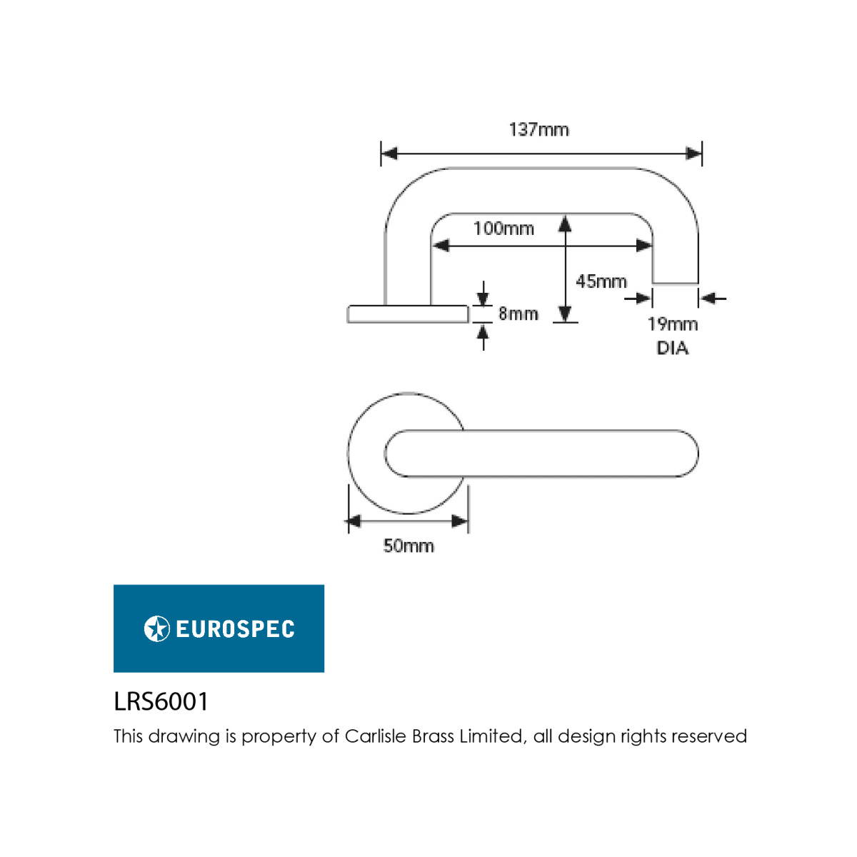The Eurospec Safety Lever on Rose Round Bar 19mm Dia is a durable and reliable lever handle made from aluminium. It comes with allen keys, grub screws, and an 8mm thick spindle for easy installation. With dimensions of 52 x 8mm (Dia x T) and a lever length of 144mm, this handle is suitable for commercial and modern residential projects. It is designed to comply with British Standards BS EN 1906 and BS8300 and is DDA Compliant, making it an ideal choice for disabled people. The handle returns back to the door, reducing the risk of clothes getting caught or injury. It comes with a 10-year mechanical guarantee and is fire door rated.
