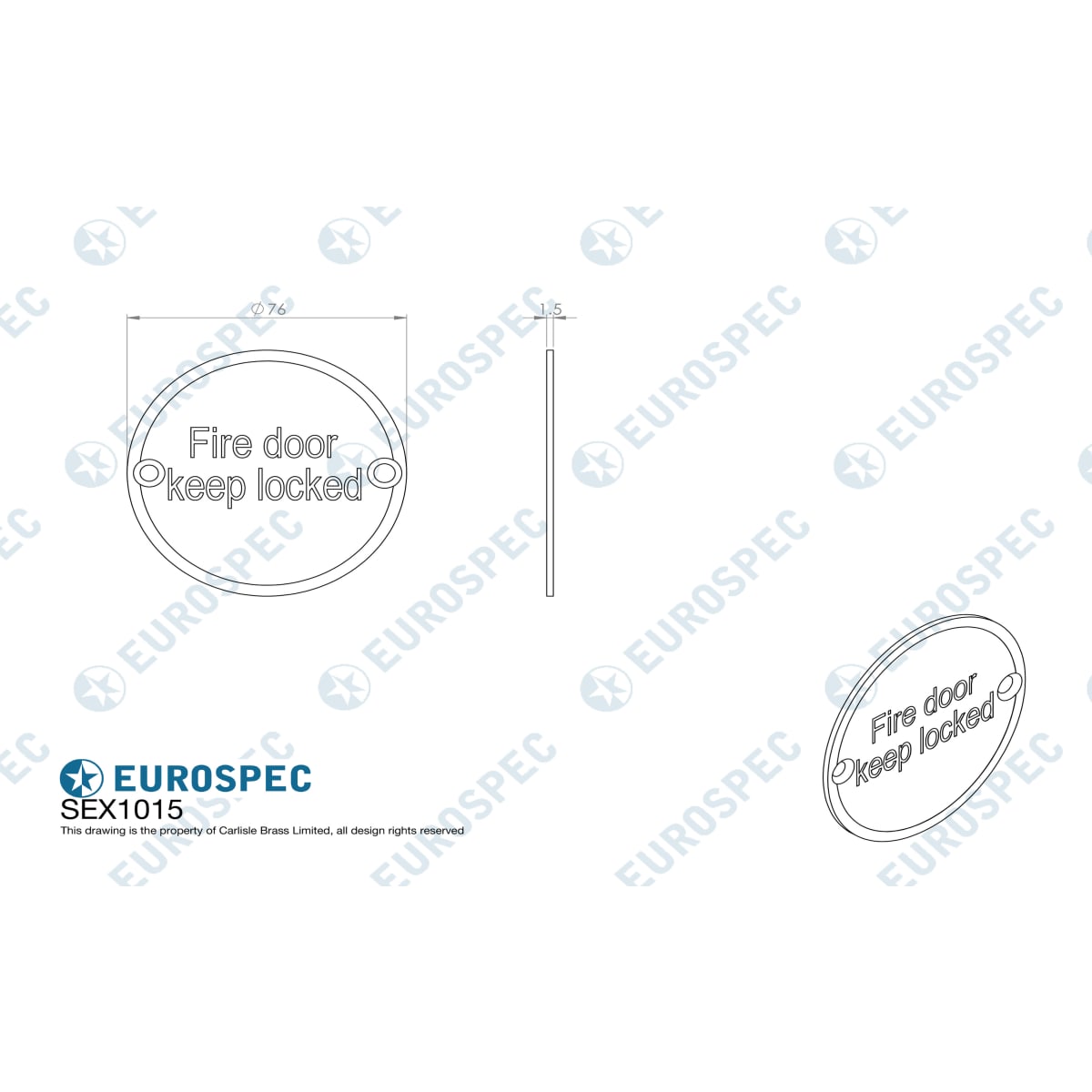 Eurospec Signage Fire Door - Keep Locked Sign, part of the Steelworx signage range in stainless steel. Standard size, 76mm Dia. Two drilled countersunk holes on each side of the sign allow for quick and easy face fix installation. Ideal for use in commercial properties.