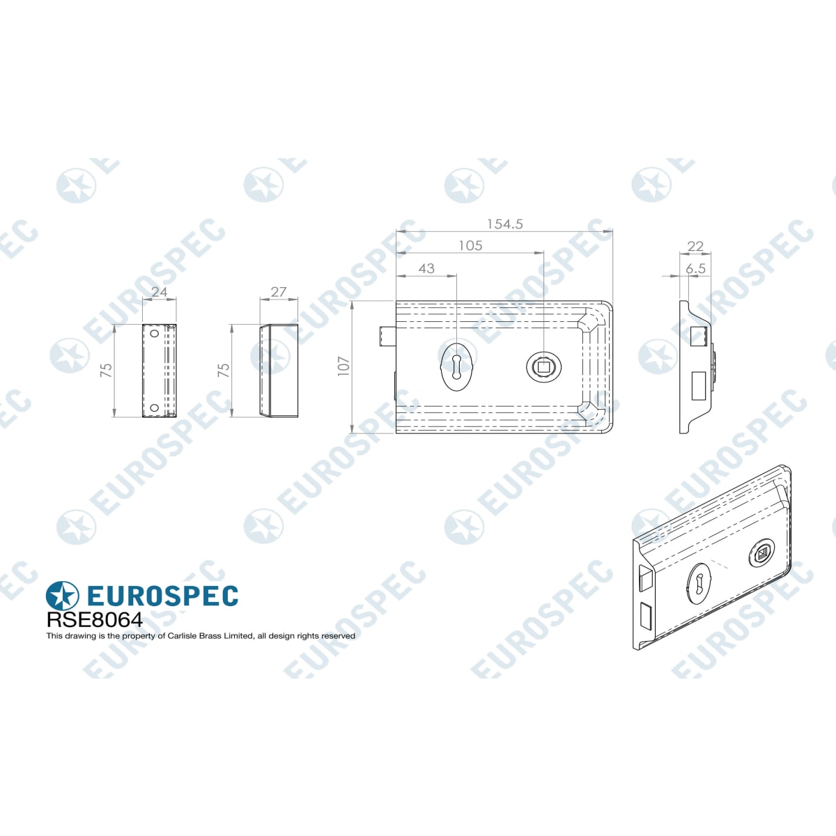 IDHESR0042 Locks & Security > Locks, Latches & Cylinders > Rim Locks & Latches > Eurospec Traditional Rim Deadlock Polished Brass