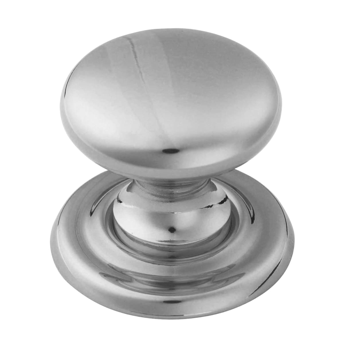 The Finger Tip Victorian Knob Polished Chrome is a classic Victorian style round mushroom shape knob upon a large raised round rose backplate. Manufactured from solid brass material which provides strength and hardness to the product and thereby providing corrosion resistance. The product measures 54.50 x 47mm (Dia x L) which is ideal for use of cabinet and cupboard doors as well as drawer units. This knob is supplied with a loose rose that can be used or discarded and a concealed rear bolt through fitting for a modern secure fixing. Polished Chrome finish provides durability to the product and also provides wear resistance