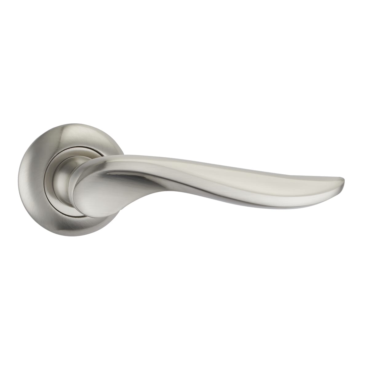 Fortessa Achilles Lever Door Handle on Round Rose Satin Nickel Plated comes in a curved lever design which gives a modern look to any doors. Manufactured from a high-quality zinc alloy material, providing a high-level of security.