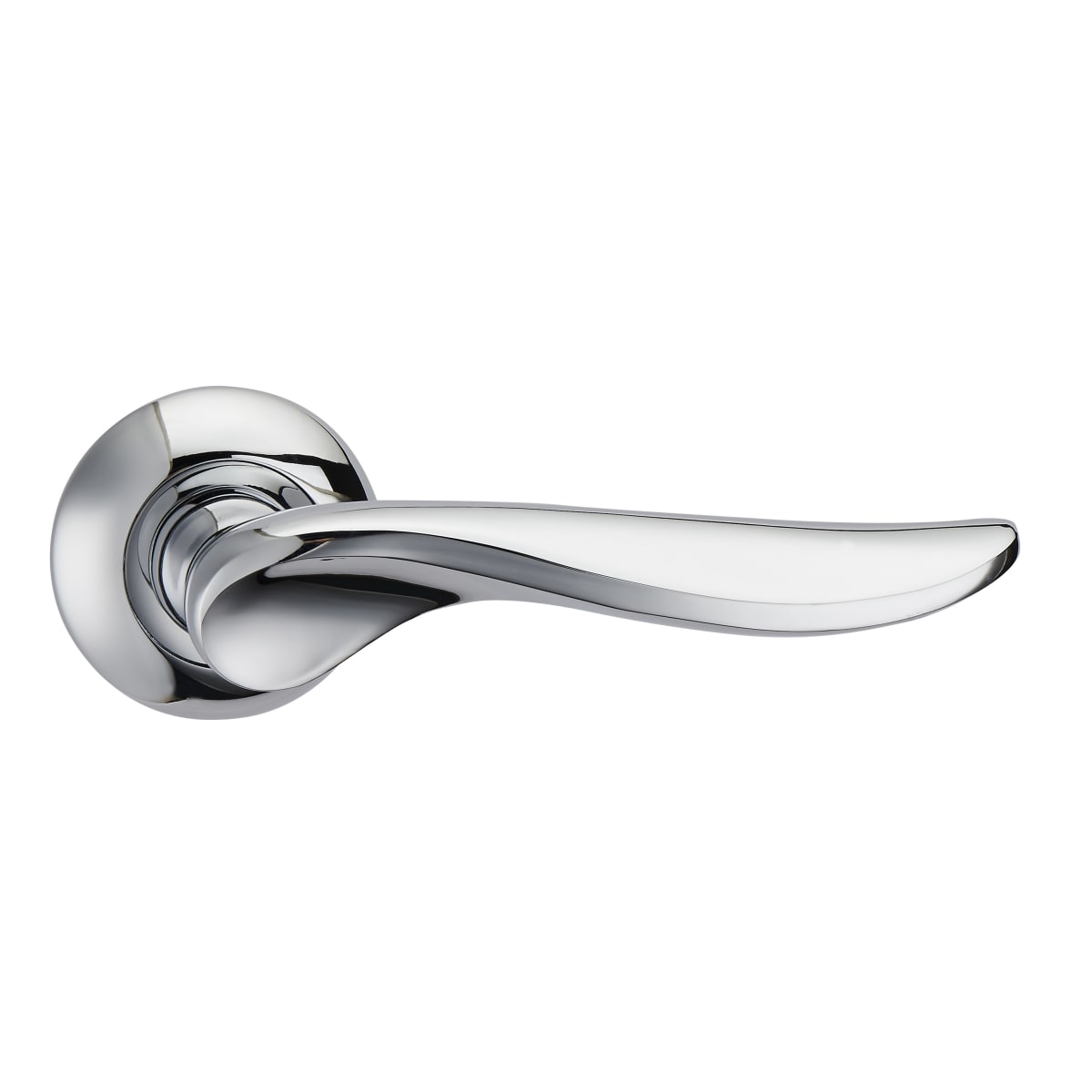 Fortessa Achilles Lever Door Handle on Round Rose Polished Chrome comes in a curved lever design which gives a modern look to any doors. Manufactured from a high-quality zinc alloy material that provides a high-level of security.