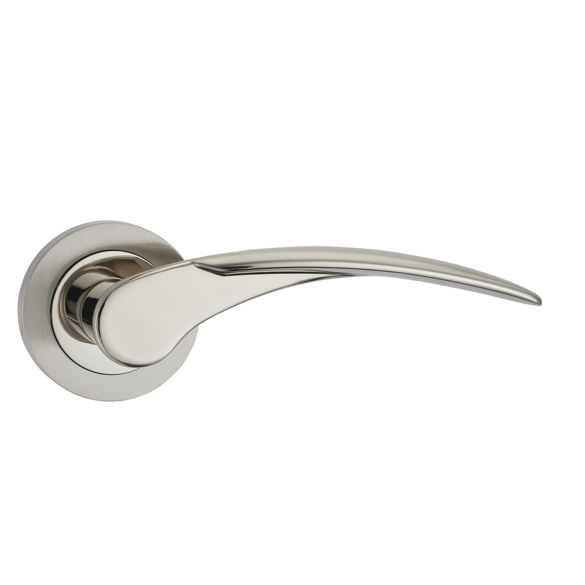 Fortessa FDEAPO-SN/NP Apollo Design Lever on Round Rose Polished Satin Nickel is a high quality round rose lever and has a 129.5mm long lever on a 52mm round rose to complement it's stylish handle shape. Each set comes with back to back fixing screws.