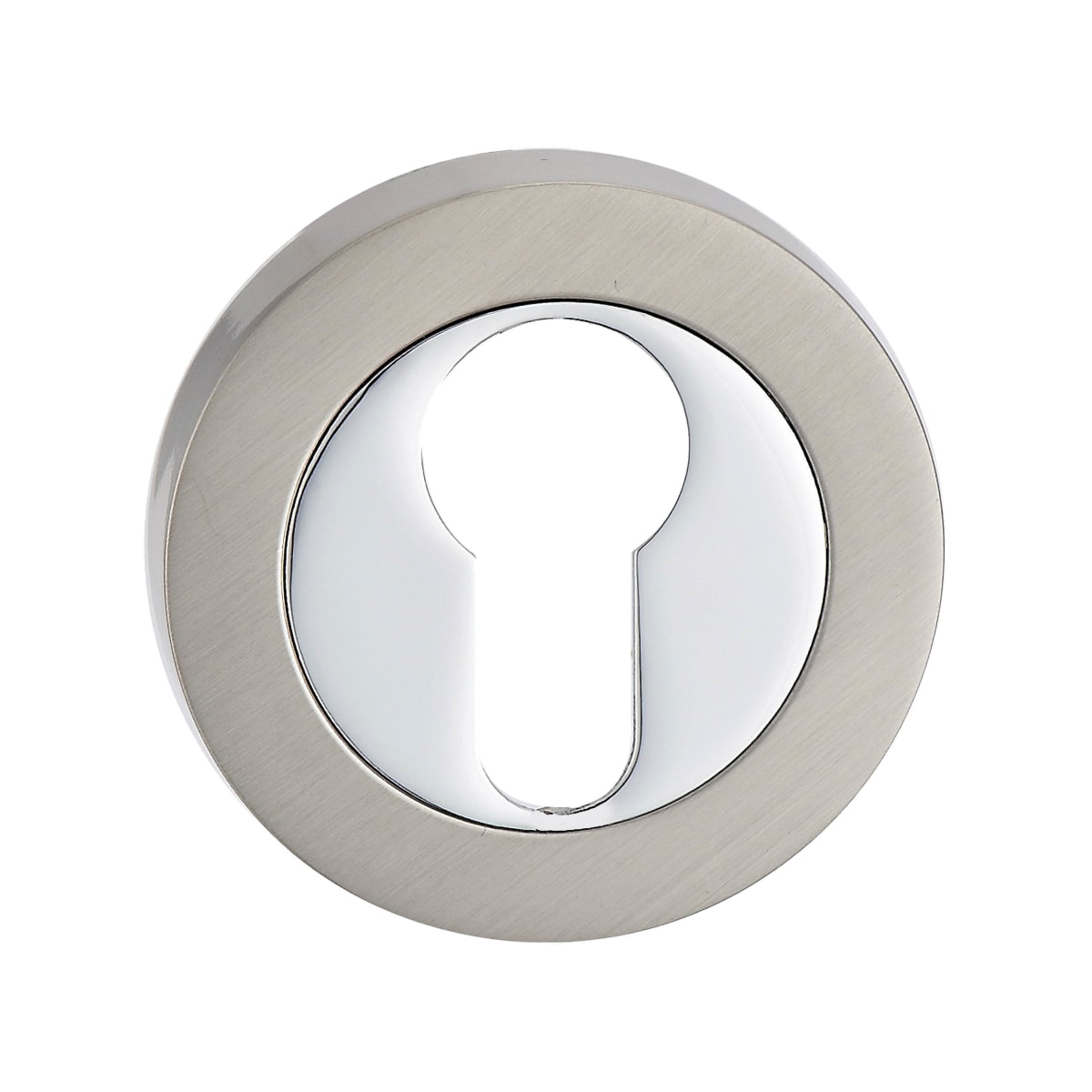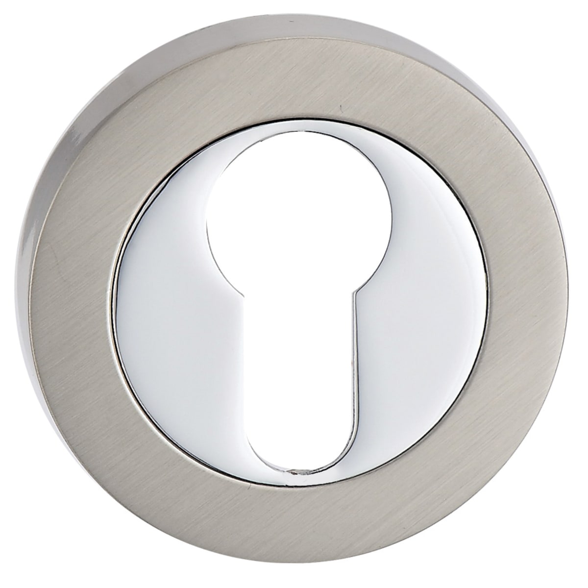 Fortessa Euro Profile Escutcheon in a satin nickel/polished chrome finish is a round shaped escutcheon that has been manufactured from zinc alloy. Designed to surround lock cylinder to conceal and finish key holes, it measures 51 x 8mm (Dia x T) with the face fixing rose being ideal for use with deadlocks and sashlocks.