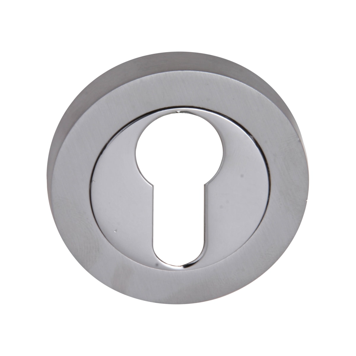 Fortessa Euro Profile Escutcheon in a satin chrome/polished chrome finish is a round shaped escutcheon that has been manufactured from zinc alloy. Designed to surround lock cylinder to conceal and finish key holes, it measures 51 x 8mm (Dia x T) with the face fixing rose being ideal for use with deadlocks and sashlocks.