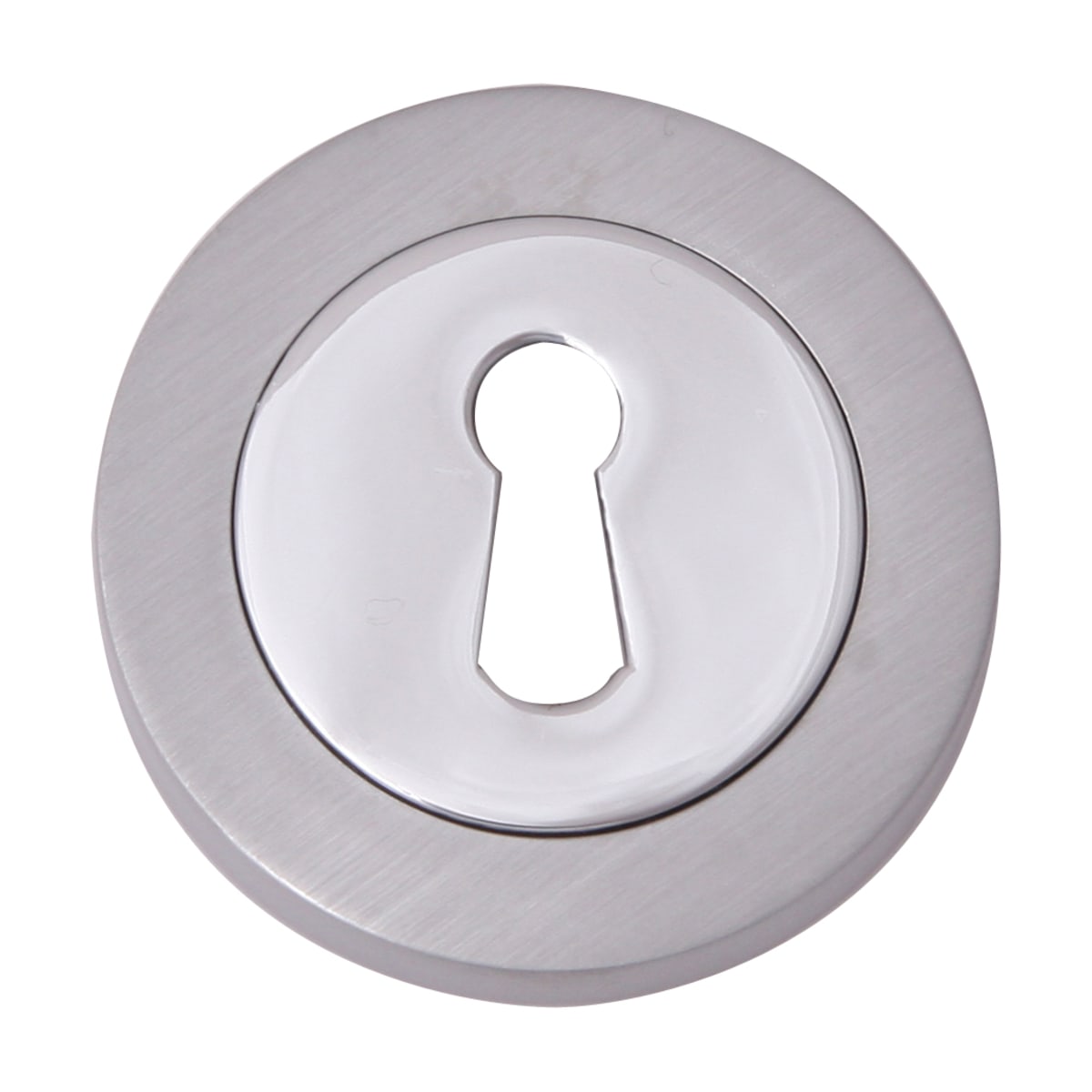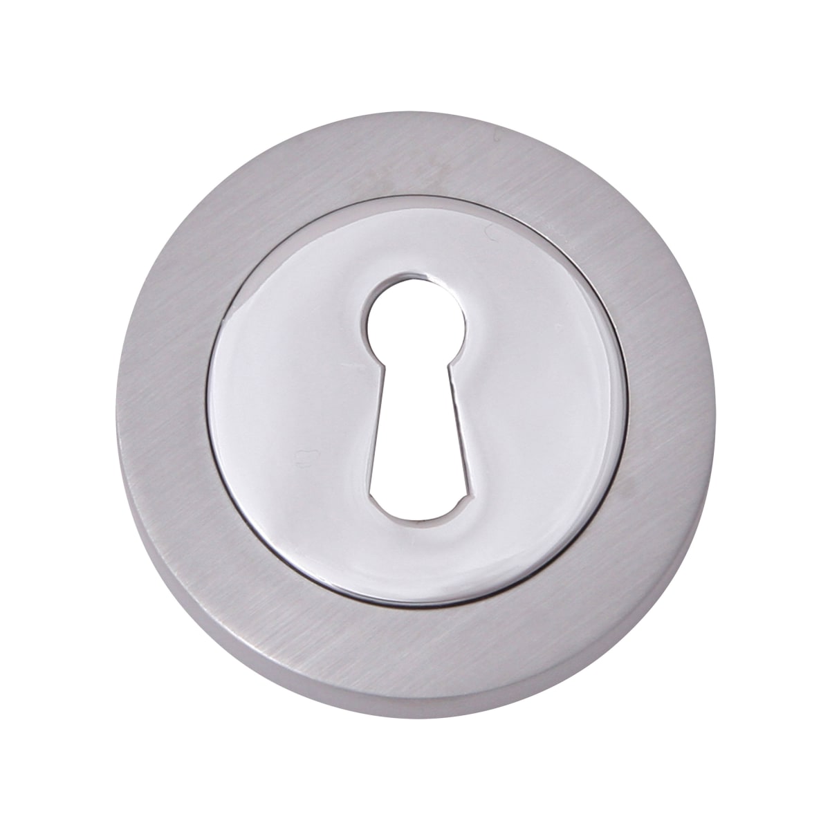 Fortessa Keyhole Escutcheon in a satin chrome/polished chrome finish is a round shaped escutcheon with a keyhole that has been manufactured from zinc alloy. Designed to surround lock cylinder to conceal and finish key holes, it measures 51 x 8mm (Dia x T) with the face fixing rose being ideal for use with deadlocks and sashlocks.