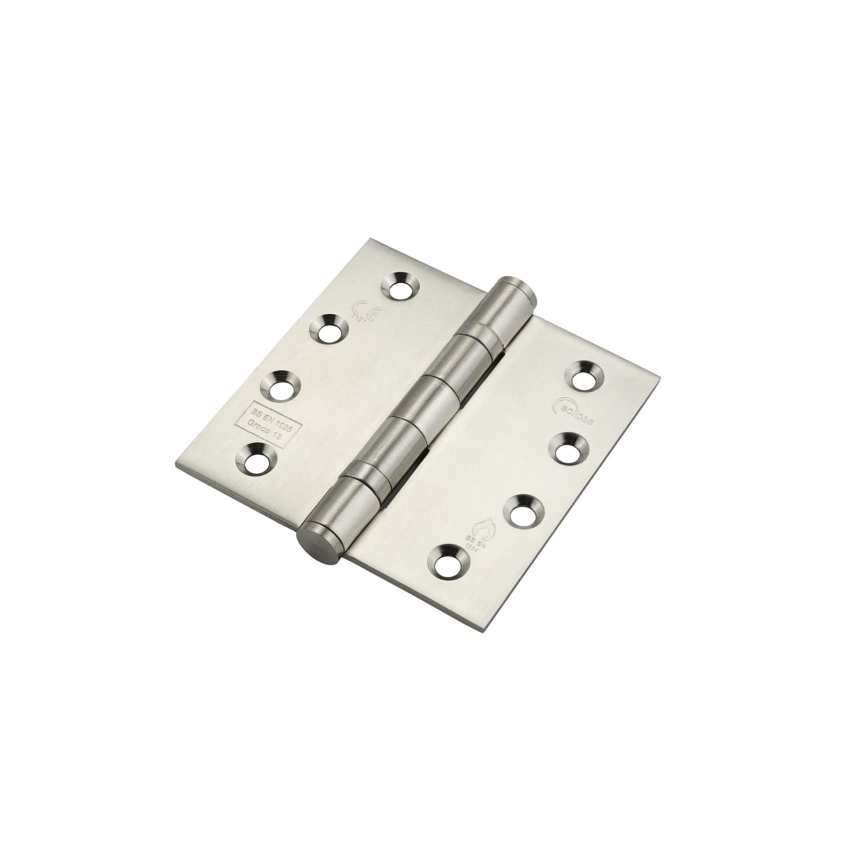 Frisco 14841 Ball Bearing Hinge Grade 13 102 x 102 x 3mm Satin Stainless Steel with square corners and tested to BS EN 1634,BS EN 1935. CE marked. 60 minute fire rated. Supplied with screws.