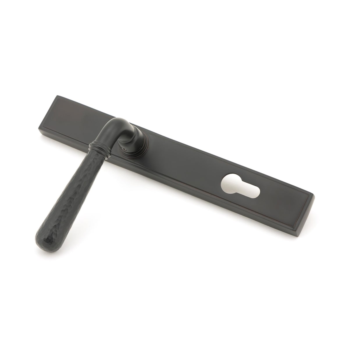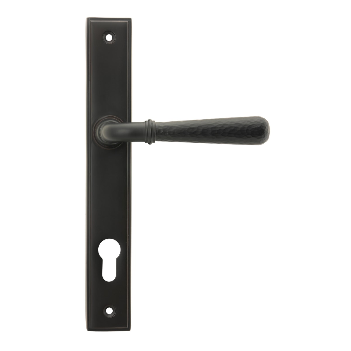 From The Anvil Aged Bronze Hammered Newbury Slimline Espag. Lock Set