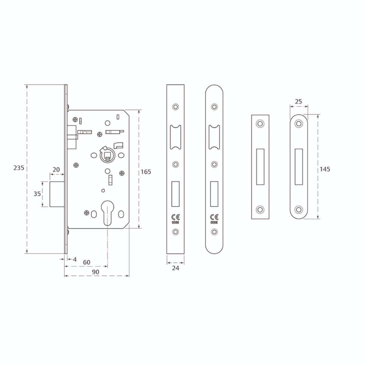 IDHWCB3025 Locks & Security > Locks, Latches & Cylinders > Mortice Locks > Union HD72 CE DIN Euro Profile Deadlock Square for end 60mm Backset Stainless Steel