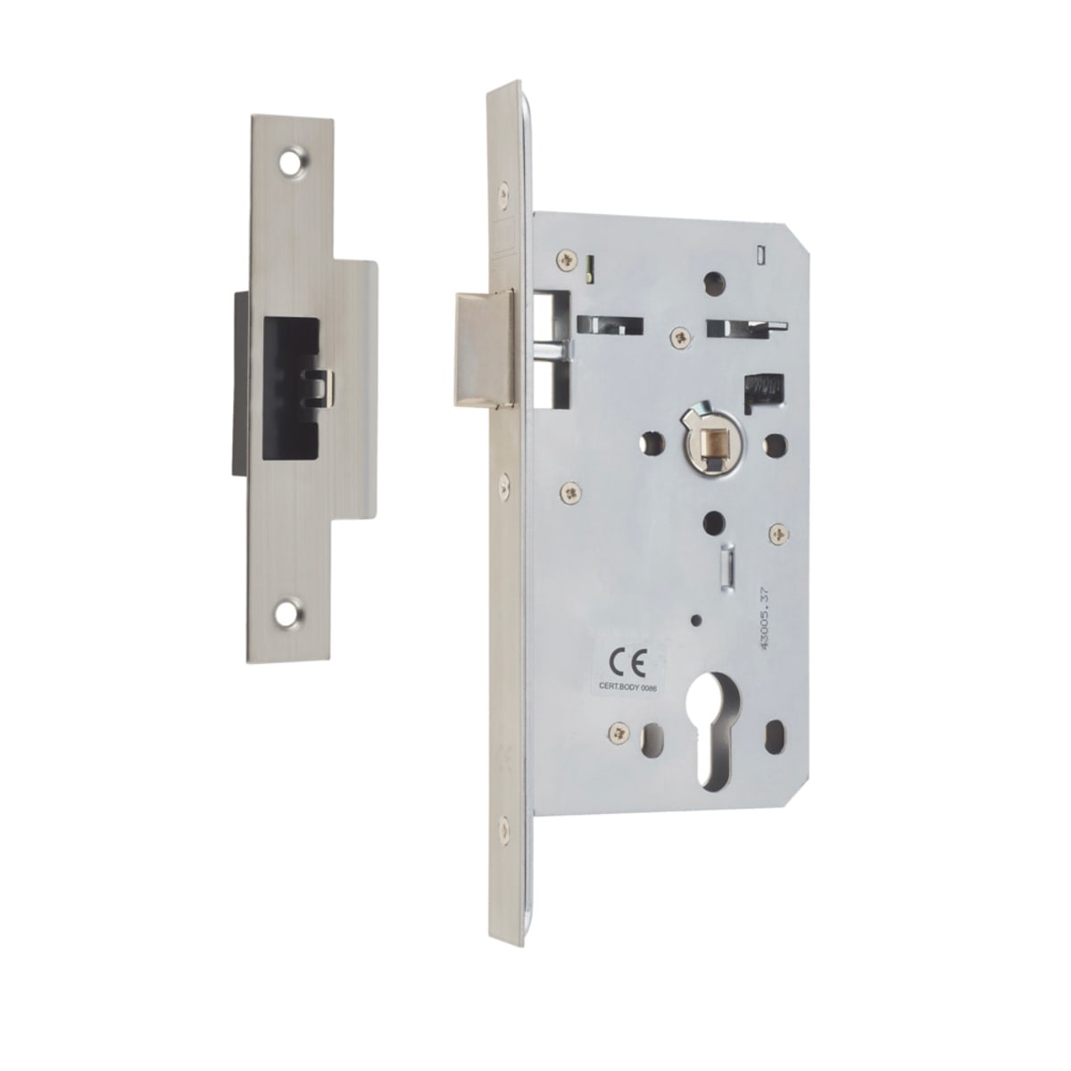 HD72 CE DIN modular euro-profile lockcases are designed to deliver high-performance locking for years. They are the most reliable and durable mortice lock available, featuring a new heavy-duty latch technology built in. But this is more than just about strength and durability. HD72 also has a contemporary design and with a 15-year guarantee as standard, you can recommend HD72 with confidence./ppThe HD72 deadlock has DIN style casing for use with euro profile cylinders. It has been tested to over 3.5 million cycles, its robust design makes it ideal for high-frequency areas or where there is a high chance of misuse, for use with sprung and unsprung door furniture, and has piercings to accept bolt-through furniture. It also features a splinter guard providing a professional installation. Available with square or radius faceplates. Supplied with lockcase, faceplate, strike plate, plastic splinter guard, and fixings.