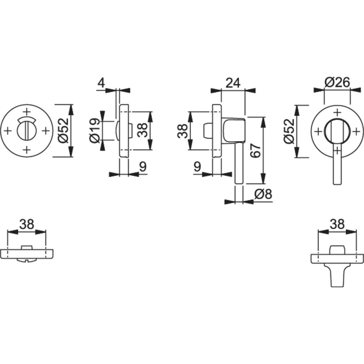 IDH2260631 Door Hardware & Closers > Door Furniture > Bathroom Turns > Hoppe Duraplus Escutcheon Disabled Turn/Indicator 67 x 52mm Satin Anodised Aluminium 42KS