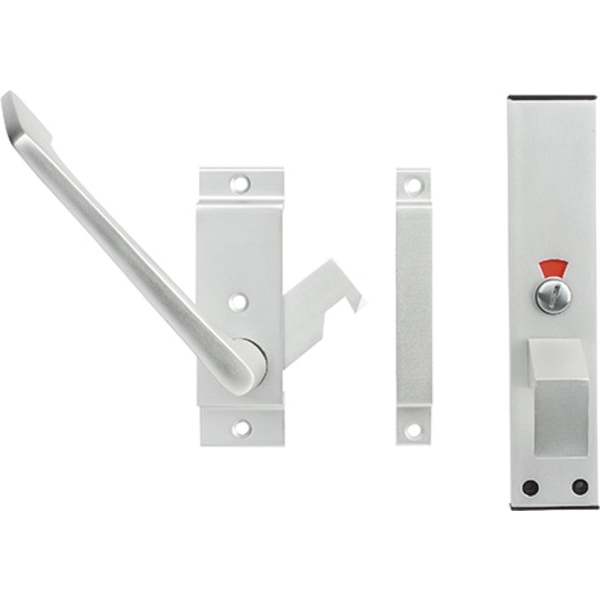 Hoppe Facility Furniture Western Closet Set Handle is a set on short backplate version. Satin anodised aluminium finish ensures the product lasts longer. Keyhole has an emergency release with a red-white indicator/turn. Suitable for door thickness ranging from 20mm to 40mm. The spindle size of the product is available in sizes 8mm as well as 5mm single size reduced spindle.