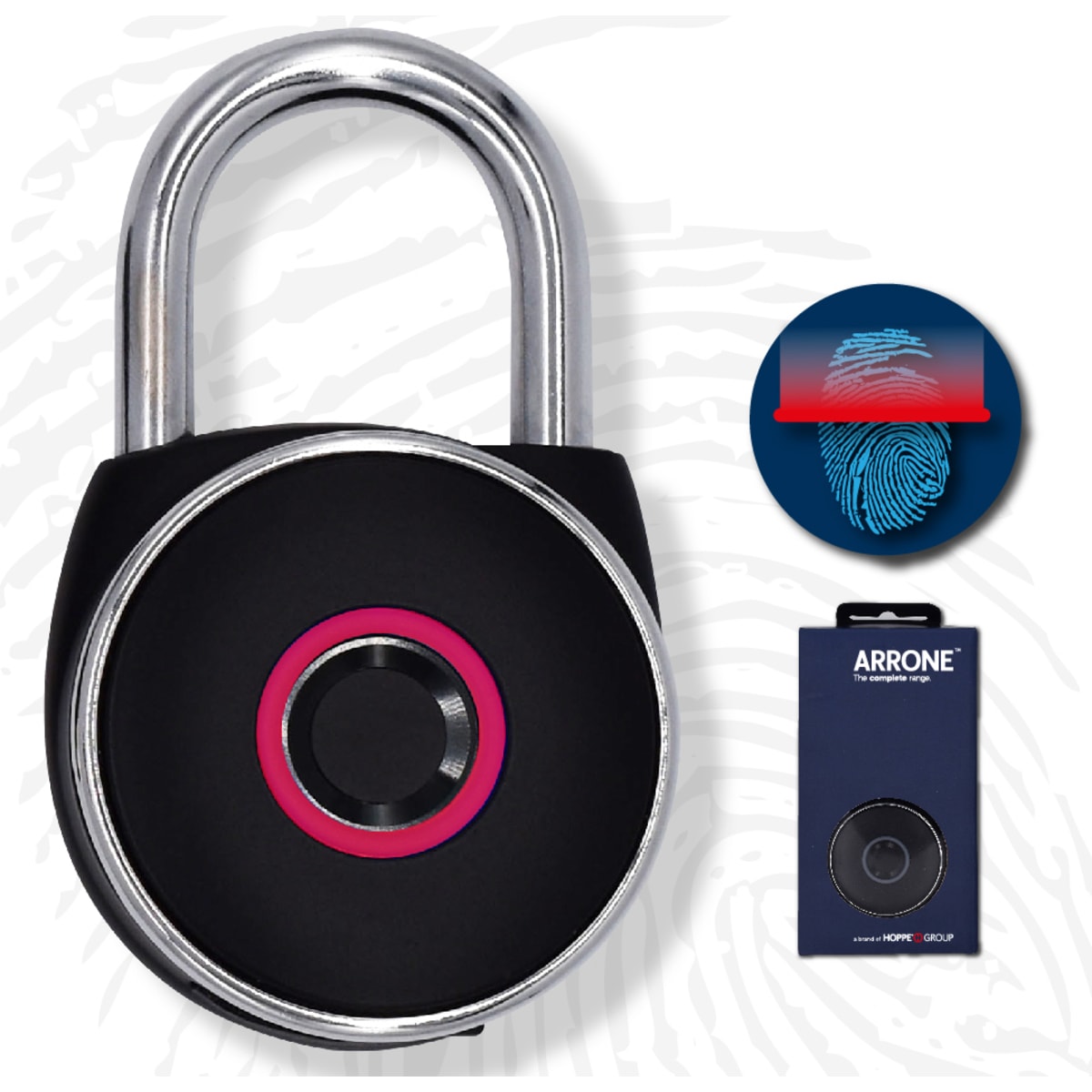 AR90/54 Fingerprint Padlock that has been manfactured from Arrone, a brand of Hoppe group, that have been designed to be unlocked using just a fingerprint and respond to recognised prints in less than a second.