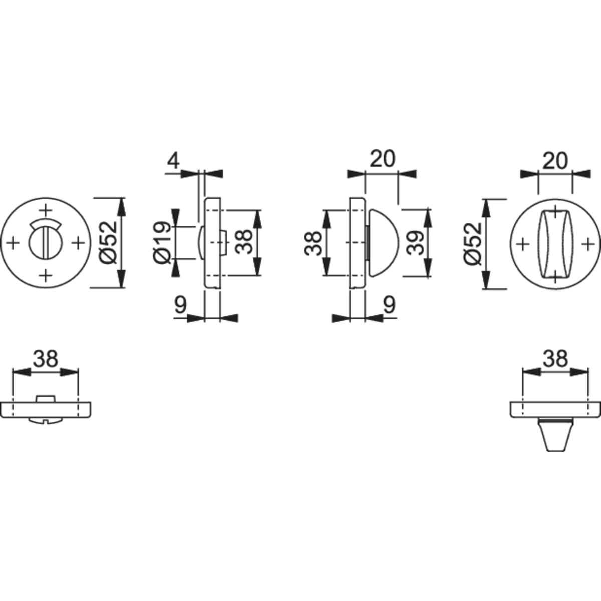 Hoppe Turn and Release Satin Anodised Aluminium is supplied with both bolt through and wood screw fixings. The standard option includes a 105mm full profile spindle. It has a 19 x 22mm straight levers and return levers on a 52 x 8mm sprung round rose. The keyhole cover helps in protecting the wood at the edge of the keyhole.