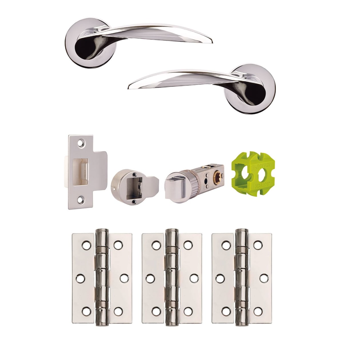 The entire Jigtech range of levers are now supplied in a convenient door pack which contains lever handles, the Jigtech spacer, CE SmartLatch and three ball bearing hinges.