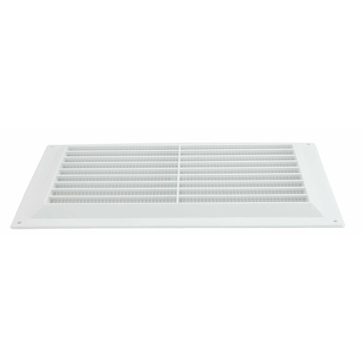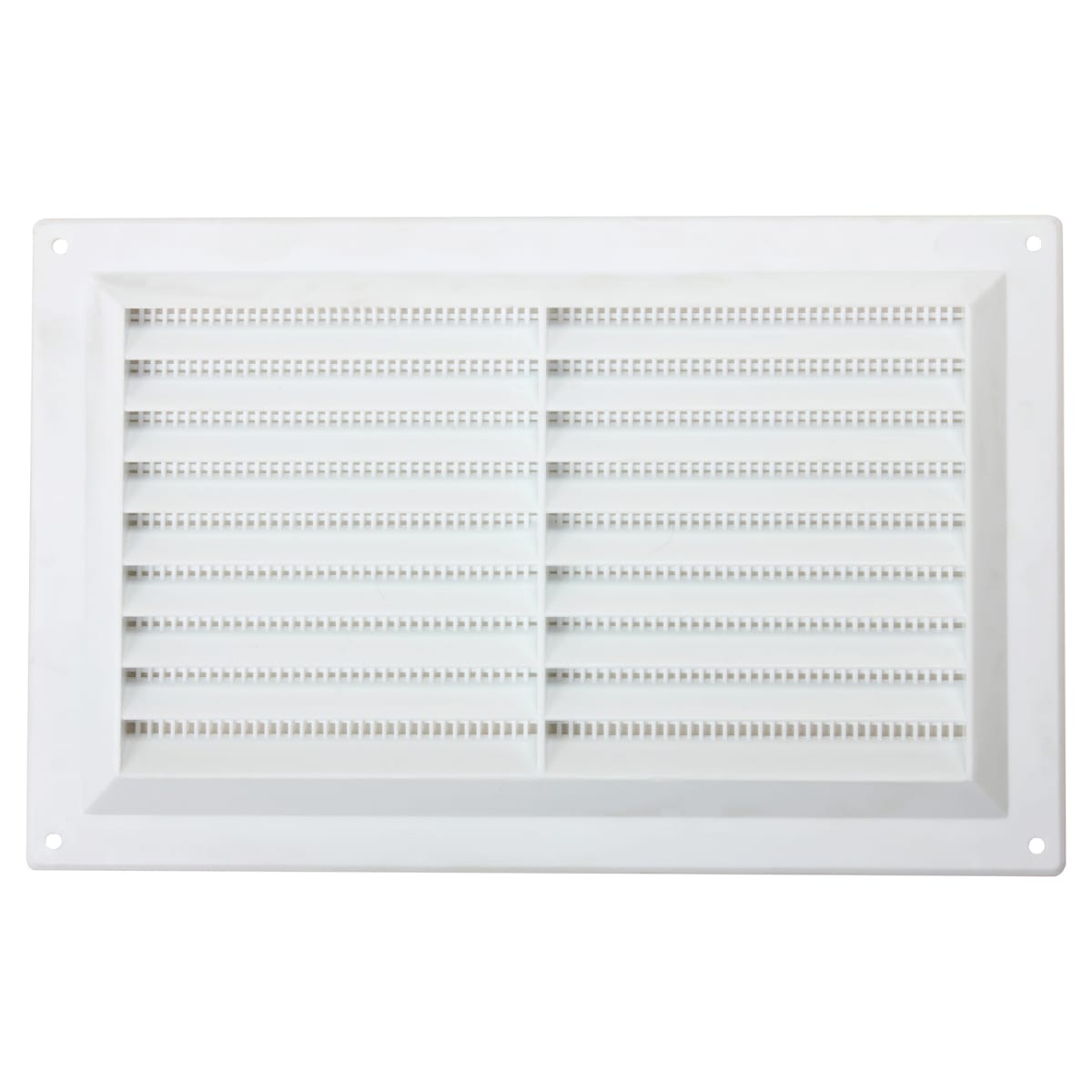 From the market leading MAP brand of vents, this plastic louvred vent is ideal for providing air flow through a building, helping to reduce problems caused by stale air, dampness, smells and condensation. It has a fixed flyscreen to keep out insects and spiders and is ideal for domestic applications such as cupboards and larders. The 9x6" air flow area provides 9500sq mm of free air space and the vent size is designed to cover a standard double brick aperture. Made of strong white plastic finish, it is suitable for interior or exterior use. This vent is not suitable for venting gas appliances.