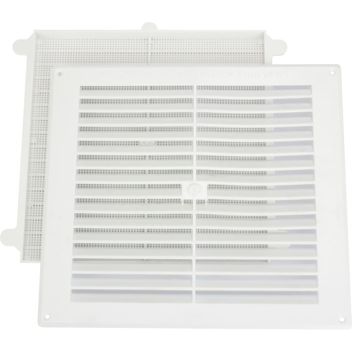 This louvred plastic vent is ideal for providing air flow through a building, helping to reduce problems caused by stale air, dampness, smells and condensation. It has a removable flyscreen to keep out insects and spiders and is ideal for domestic applications such as cupboards and larders. The 9x9" air flow area provides 21900sq mm of free air space (without flyscreen) and the vent size is designed to cover a standard single brick aperture. Made of strong white plastic, it is suitable for interior or exterior use. The flyscreen can be removed if not required. Note this vent is only suitable for venting gas appliances with the flyscreen removed.