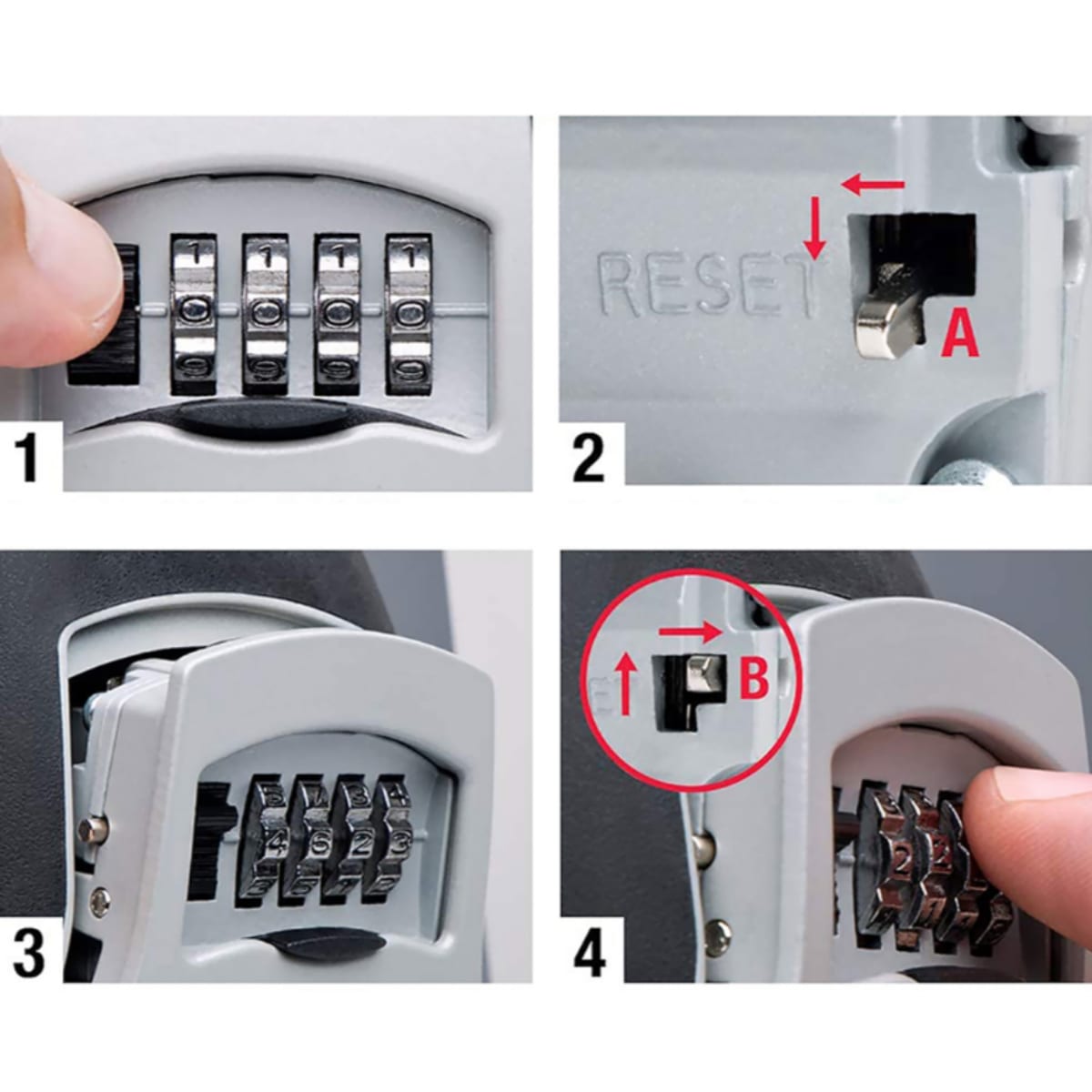 • Resettable 4-wheel combination lock