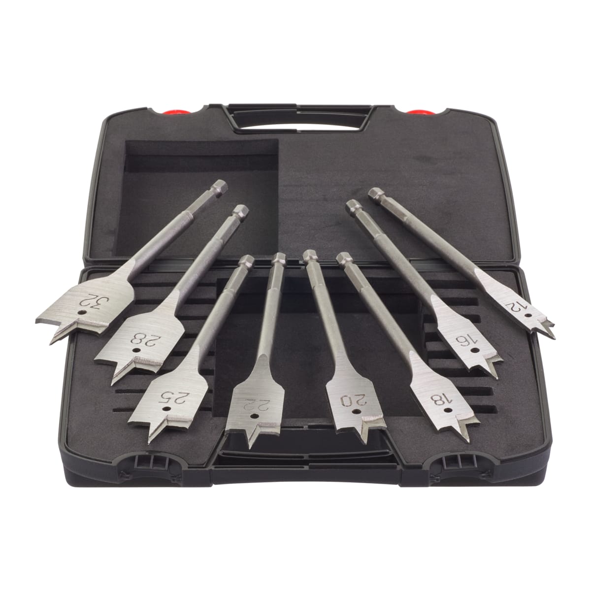 Flat bit set suitable for drilling in natural hard & softwood and chipboard.