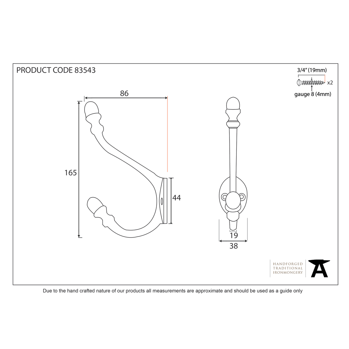 Our large and varied collection of hooks add character and charm to any project or property. Can be used as a single item or grouped together in the same size or differing sizes to create a feature. Fixing plate dimensions: 44mm (L) x 38mm (W), Overall height: 165mm, projection: 86mm.