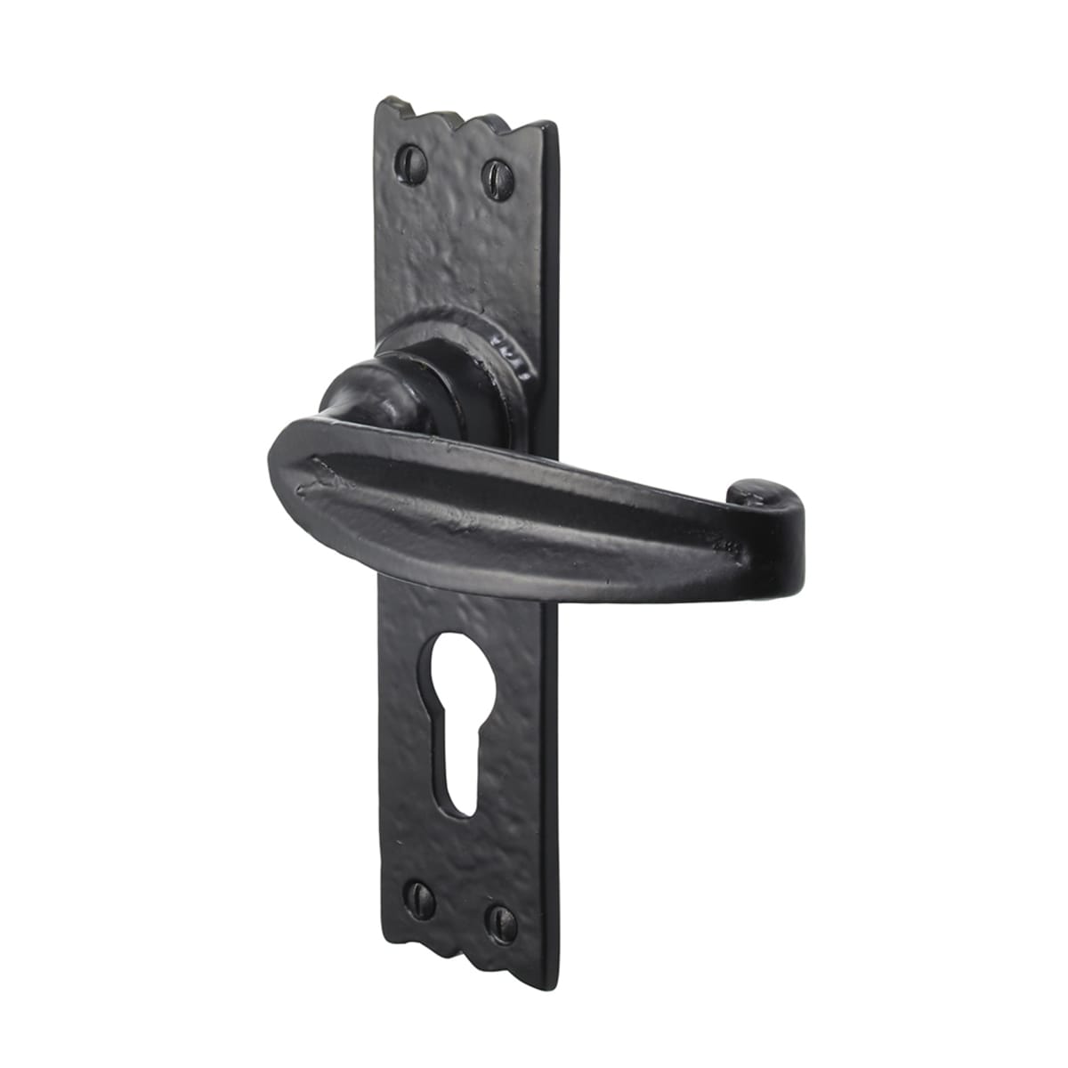 Old Hill Ironworks No.4007 Charlbury Suite Lever Euro Cylinder Handle 158 x 38mm (H x W) Black Antique is a distinctive sylish lever that looks great on any door. It is designed with inward curved handle, ending with a wrapped flange flourish for a comfortable grip. The lever operates with a mortice bathroom lock, latch and bolt, mostly found on living room doors and dining rooms that avoid locking. The Old Hill Ironworks range is hand-finished combining malleable cast iron of the highest quality, with a stainless steel inner mechanism for increased endurance.