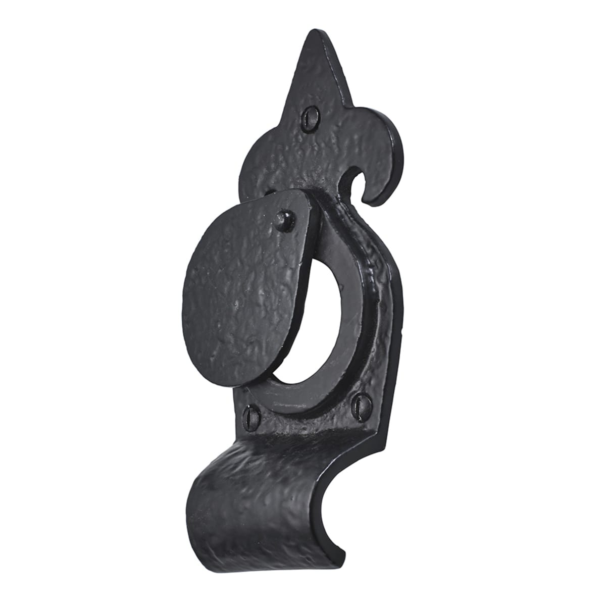 Old Hill Ironworks No.4364 Fleur de Lys Cylinder Pull 144 x 63mm (H x W) Black Antique features a stylish design and is used on cylindrical night latches assisting in closing a door without the need of a handle. A pin is located behind to stop the movement of the plate. The Old Hill Ironworks range is hand-finished combining malleable cast iron of the highest quality, with a stainless steel inner mechanism for increased endurance.