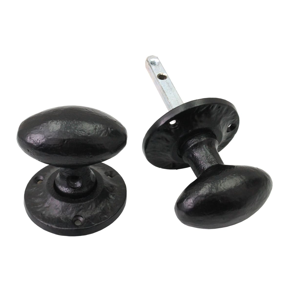 Old Hill Ironworks No.4303 Oval Mortice Rim Knob Set (Unsprung) 60mm (Dia) Black Antique is a classic round ball shape that is both timeless and stylish as well as being straightforward to operate as a half sprung door knob set. The Old Hill Ironworks range is hand-finished combining malleable cast iron of the highest quality, with a stainless steel inner mechanism for increased endurance.