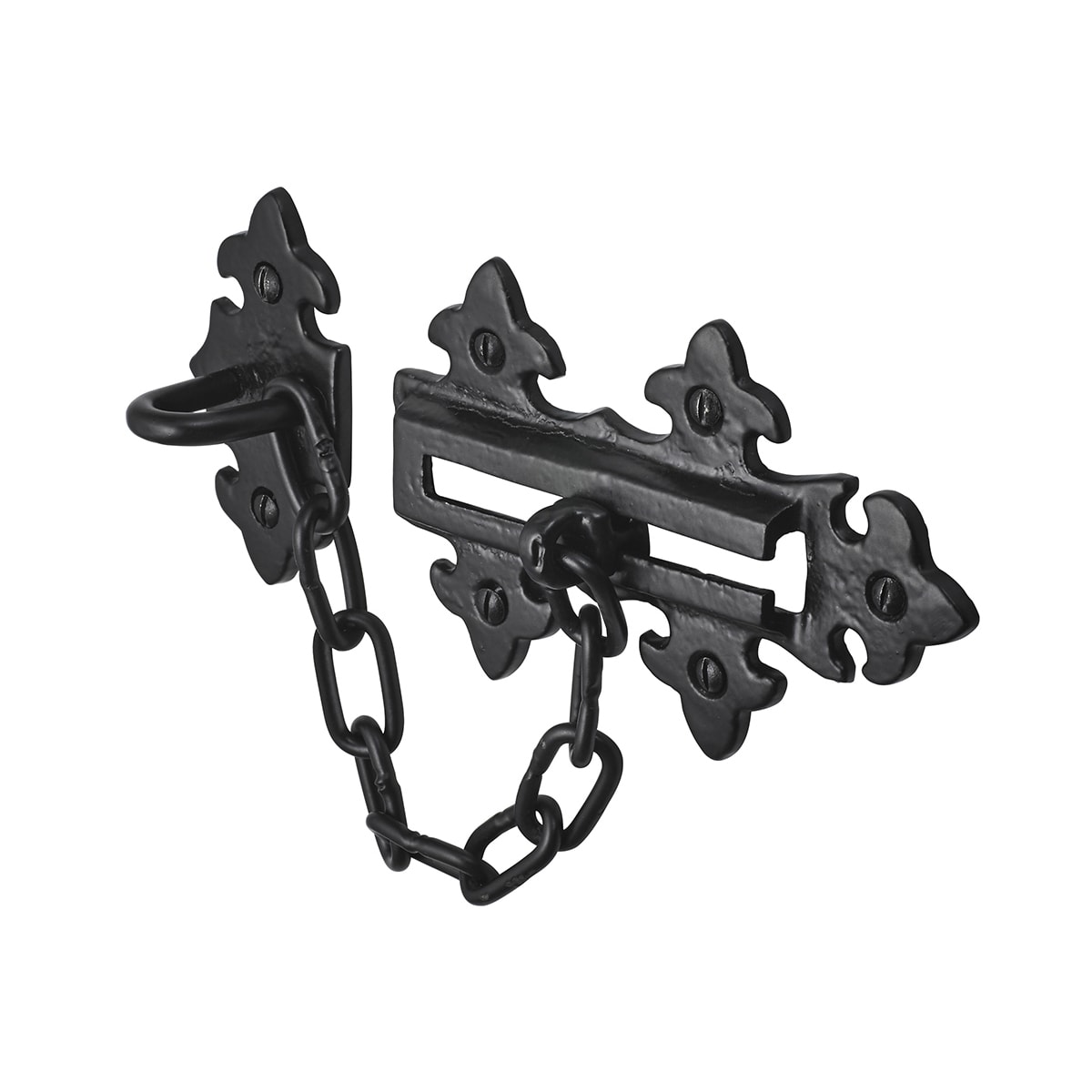 IDH43655BA Door Hardware & Closers > Door Safety & Viewers > Door Chains > Old Hill Ironworks No.4365 Fleur de Lys Door Chain 135 x 85mm Black Antique